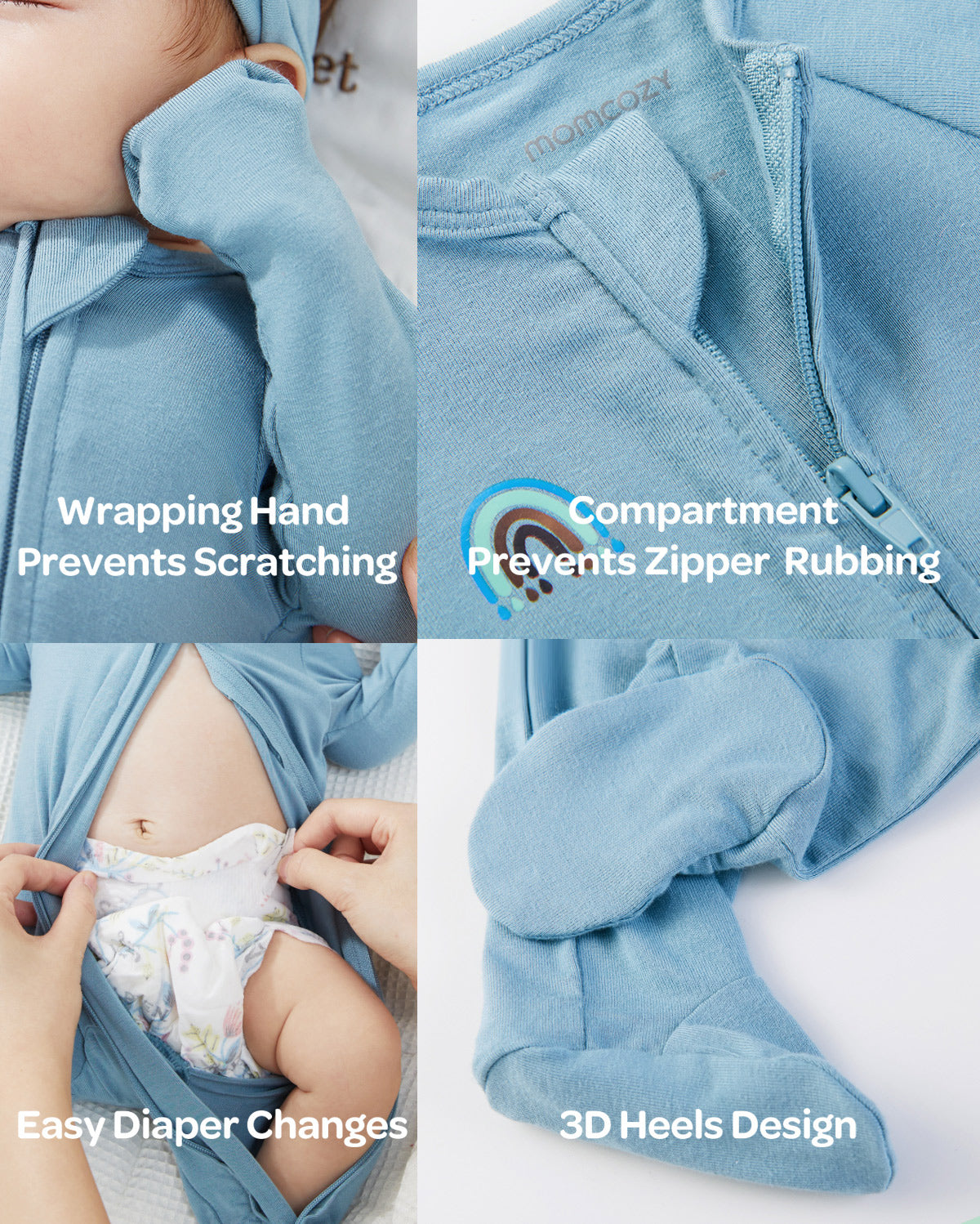 Momcozy Boy Girl Baby Pajamas - Newborn Sleepers - Blue & Grey