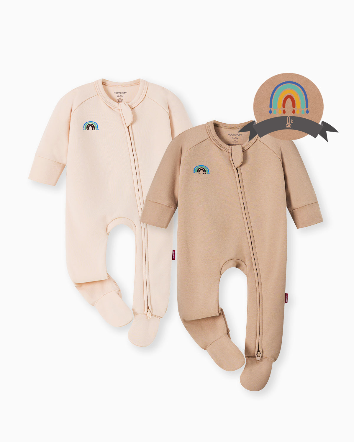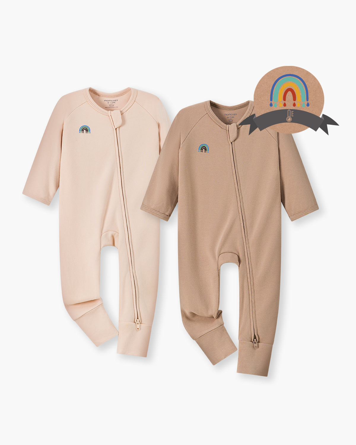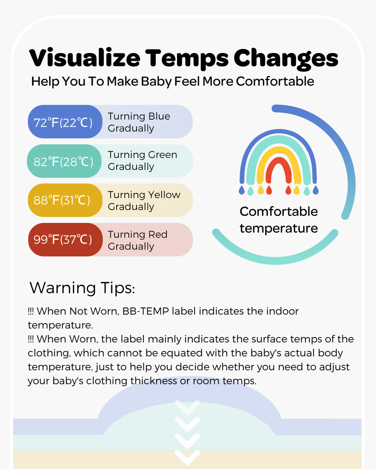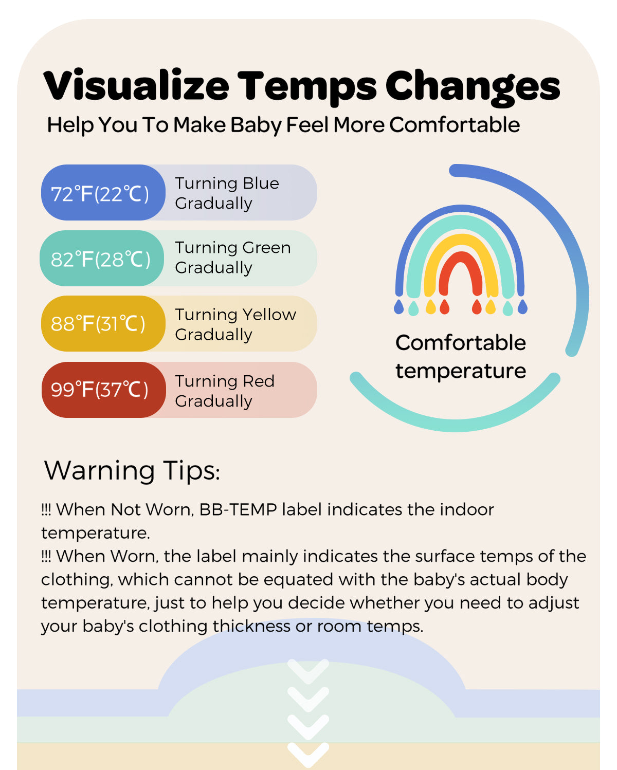 - UNIQUE BB-TEMP LABEL, VISUALIZES TEMPS CHANGES, HELP BABY MORE COMFORTABLE: Momcozy baby pajamas features a temps changes monitoring label, which mainly indicates the surface temps of the clothing when worn, help you adjust baby's clothing thickness or room temps promptly, keeps newborns babies at the perfect temp.