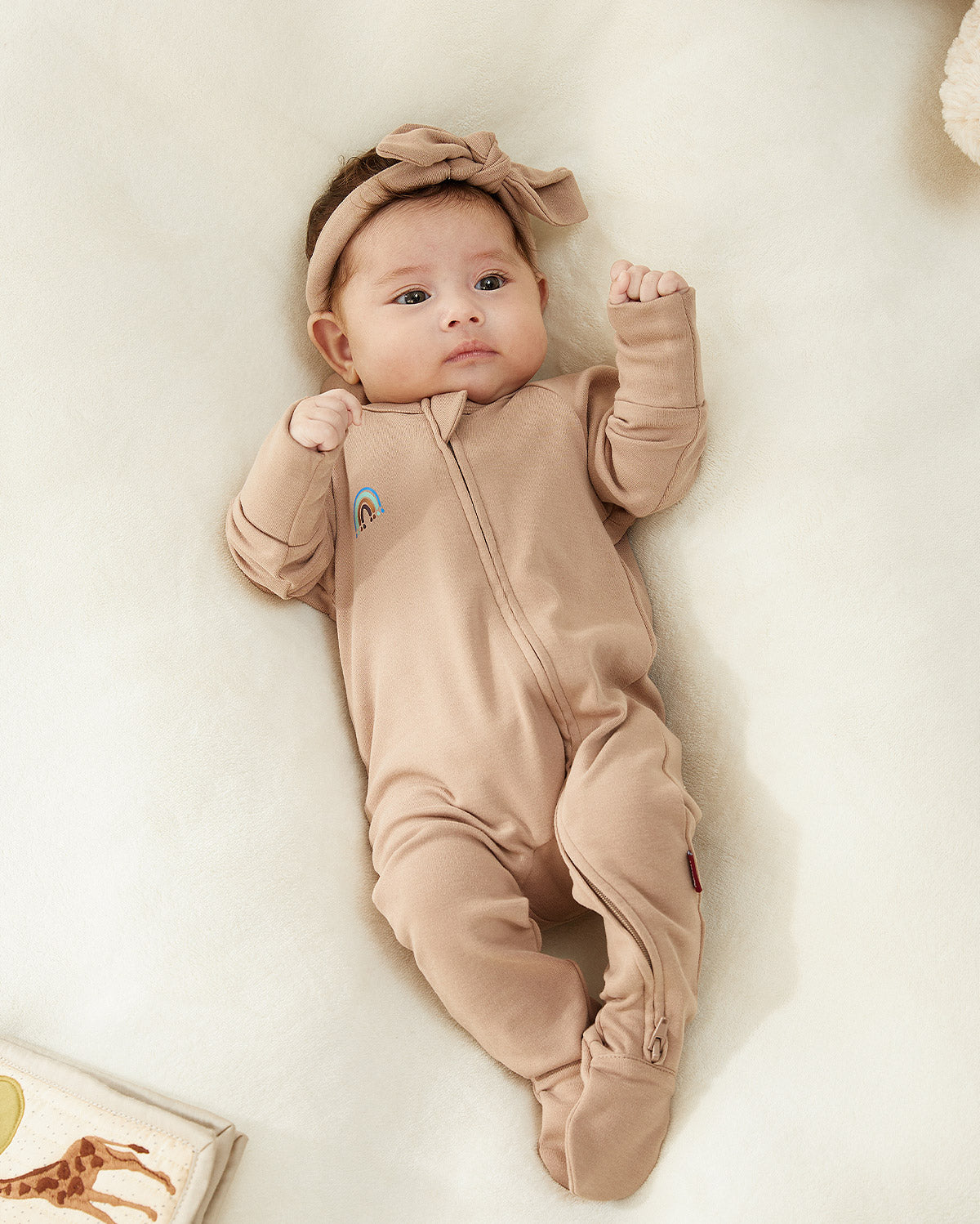 Momcozy Boy Girl Baby Pajamas - Newborn Sleepers - Dull Brown & Pinkish Grey