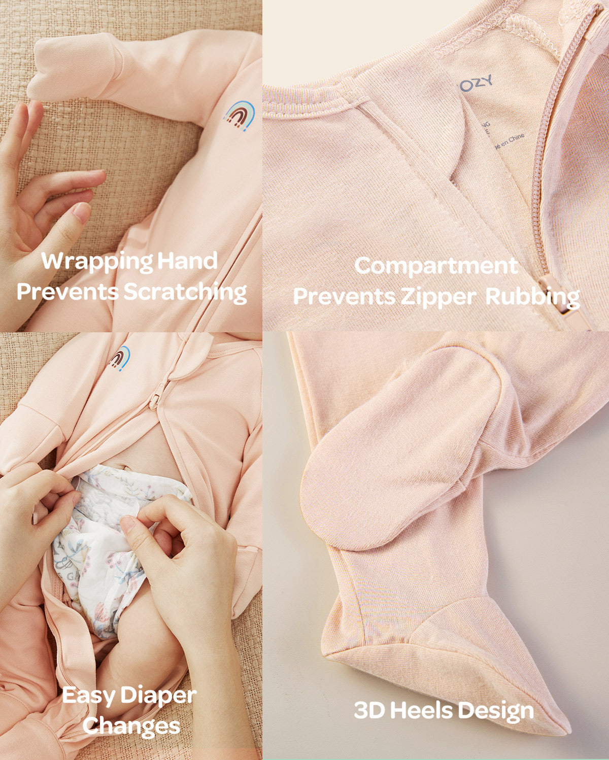 - GET RID OF CRIES DRESSING AND DIAPER CHANGES: Unisex infant baby boy girl pajamas features a 2-way double zipper, which goes all the way down the leg, great for difficult-to-dress phase and convenient for diaper changes. A compartment inside baby pjs and zipper head hiding design prevent zipper from rubbing against skin.
