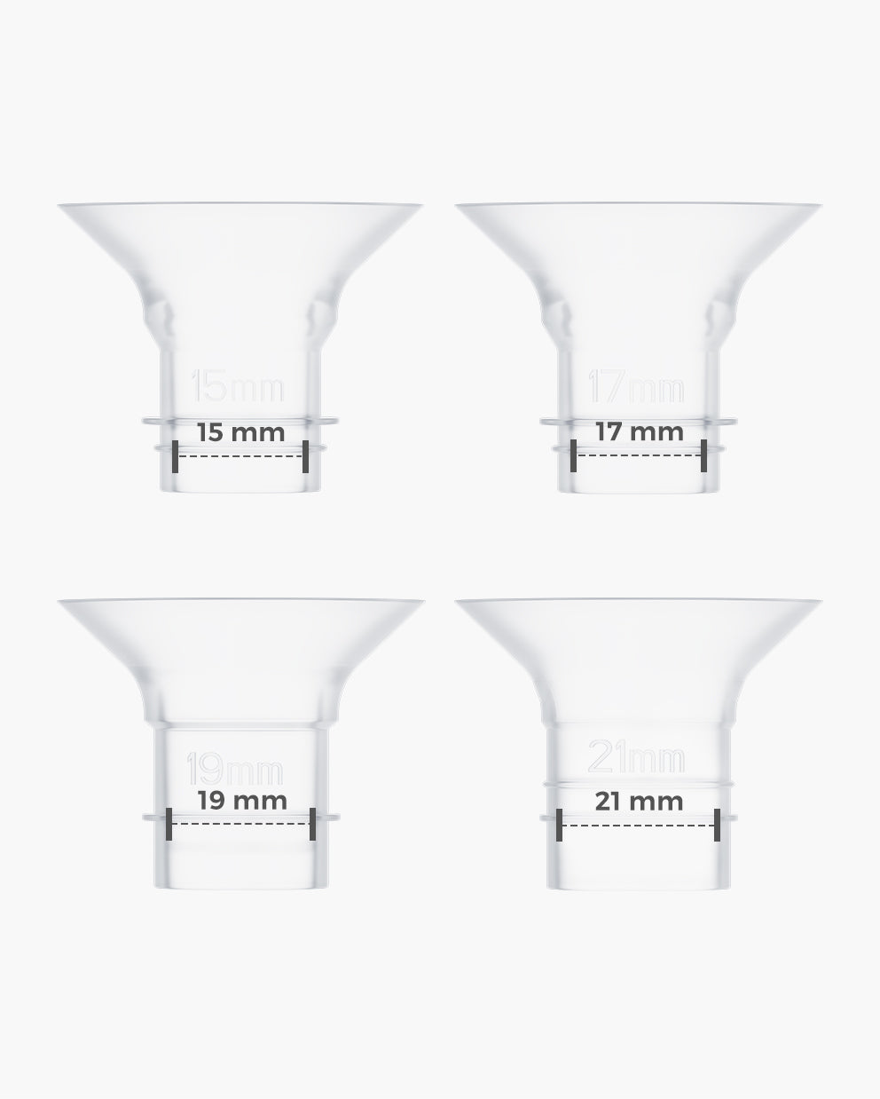 Most pumps come with 22 or 24 mm flanges and I need 17mm. These fit into every pump I have and work so well using in Spectra S1, Elvie Stride, and a Medela harmony hand pump.