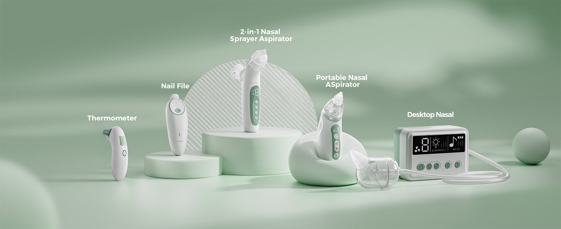 - Elektrischer, wiederaufladbarer Nasensauger von Momcozy – befreit die verstopfte Babynase sanft und zuverlässig.