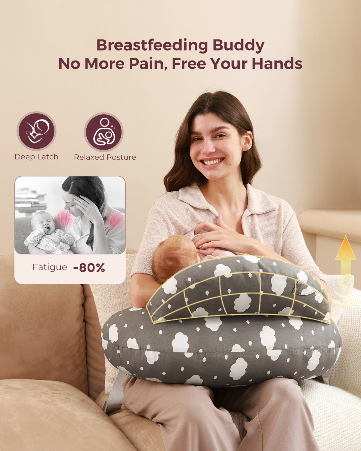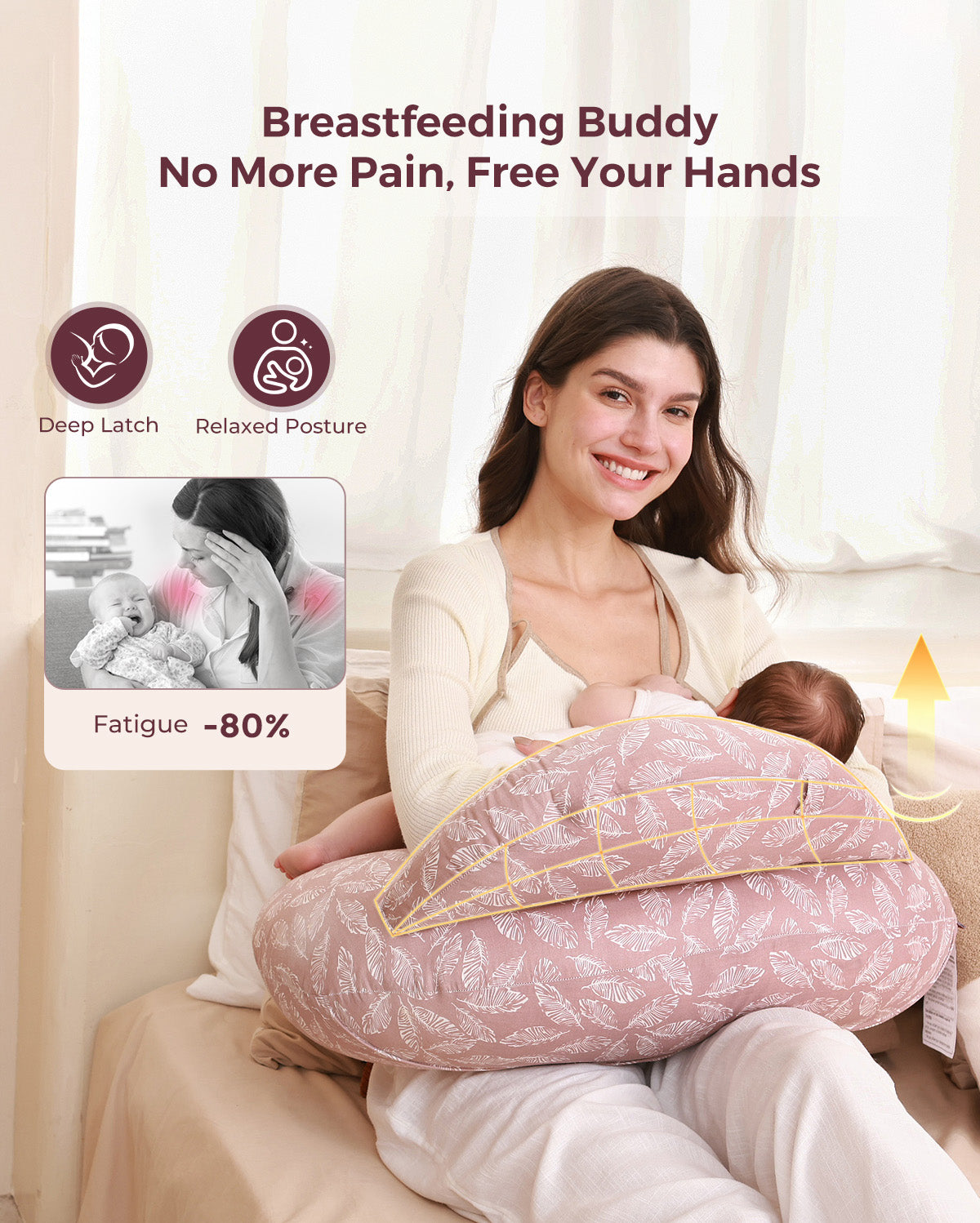 - ORIGINAL DESIGN: Designed with mom in mind, encourages moms better and comfortable posture during nursing, take pressure off shoulders and neck. Make every moms' breastfeeding life so much easier and happier. Say goodbye to any pain and sore arms.