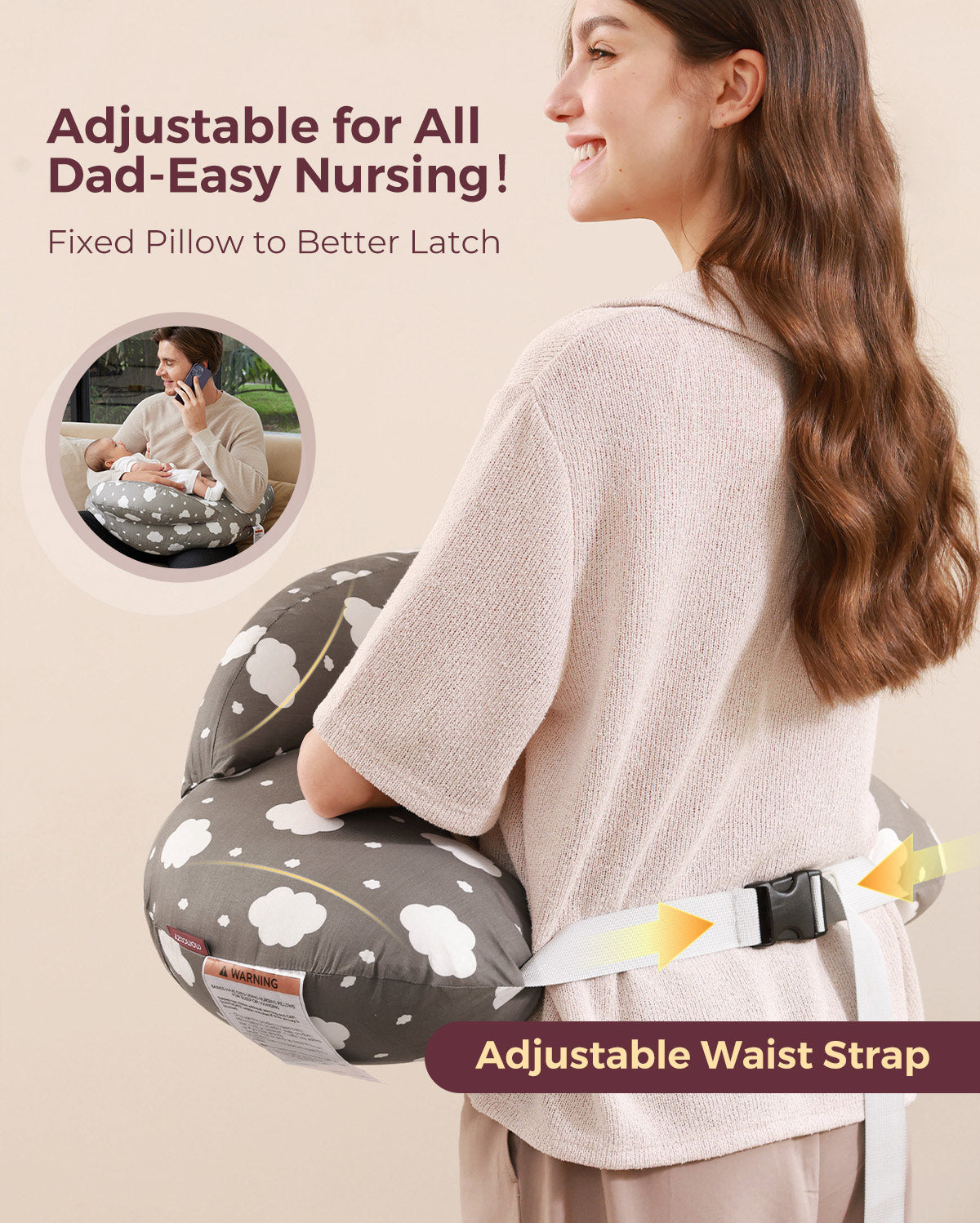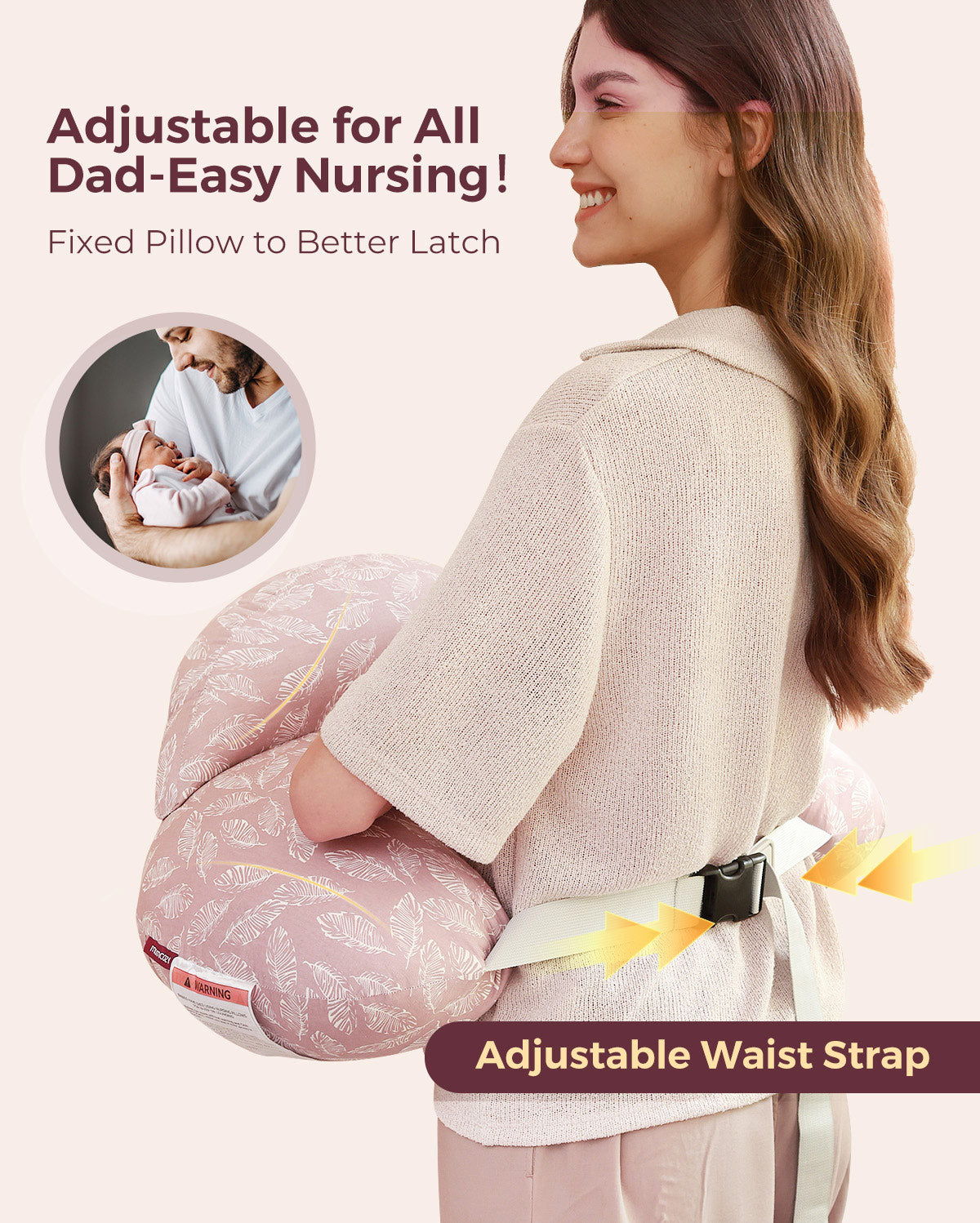 - ADJUSTABLE WAIST STRAP: Designed with adjustable strap, dads also fit it! It can help this pillow hug your body securely and stays in an ideal position. Featured with a security fence, keeps the baby from rolling off during breastfeeding or nursing.