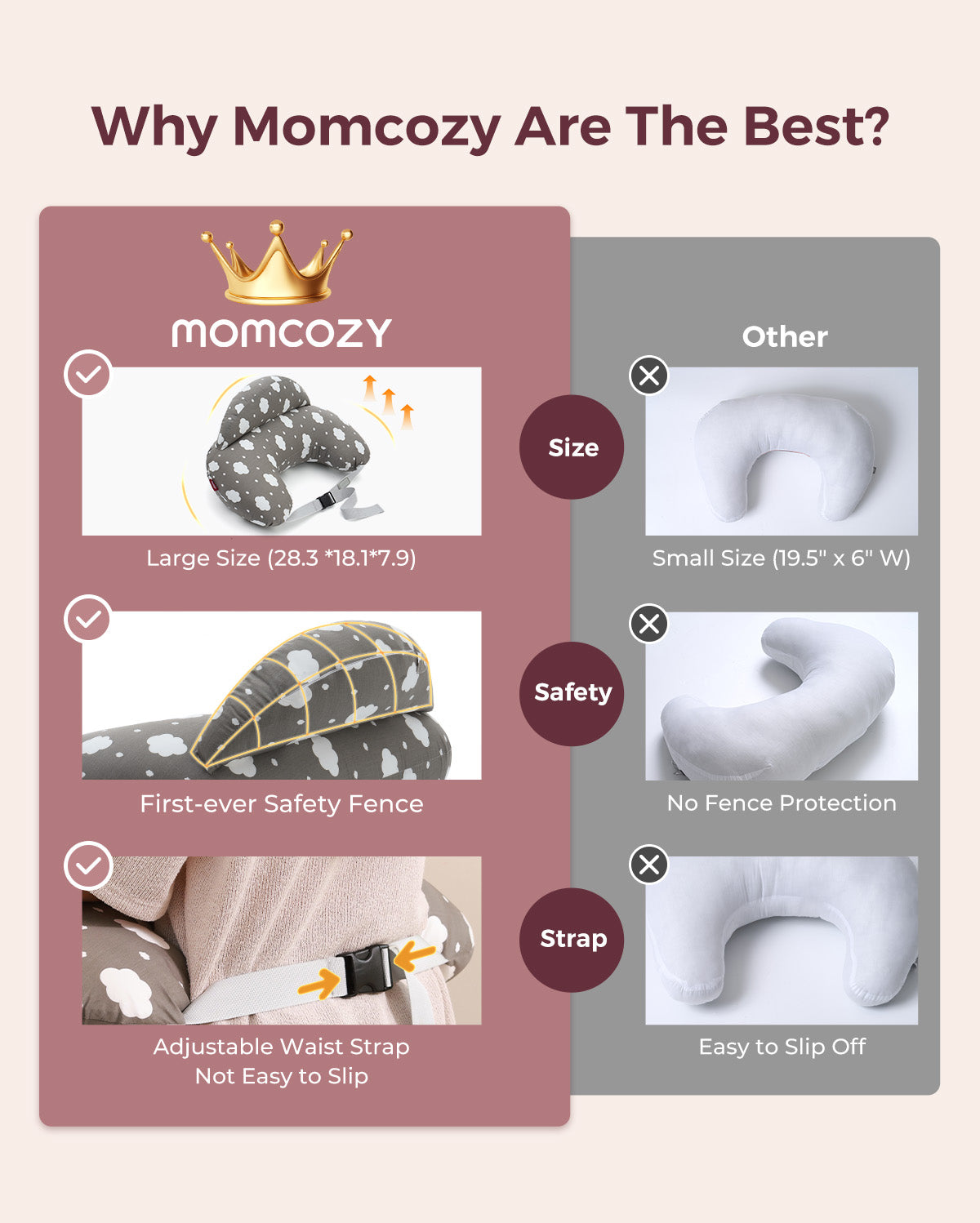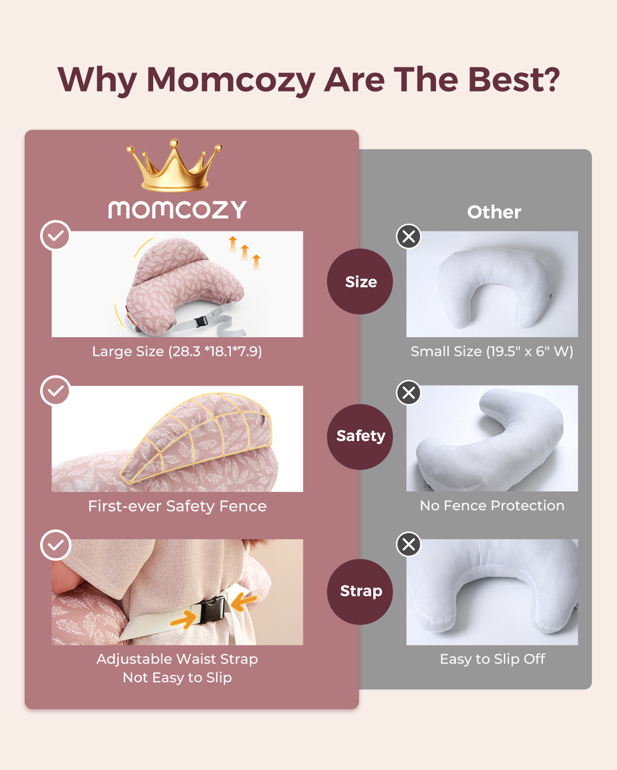 Momcozy Nursing Pillow is designed for moms, take pressure off your arms and back by lifting your baby to a more ergonomic position when nursing or bottle feeding. This allow you to breathe easier, promotes better circulation, and aids in muscles relaxation.