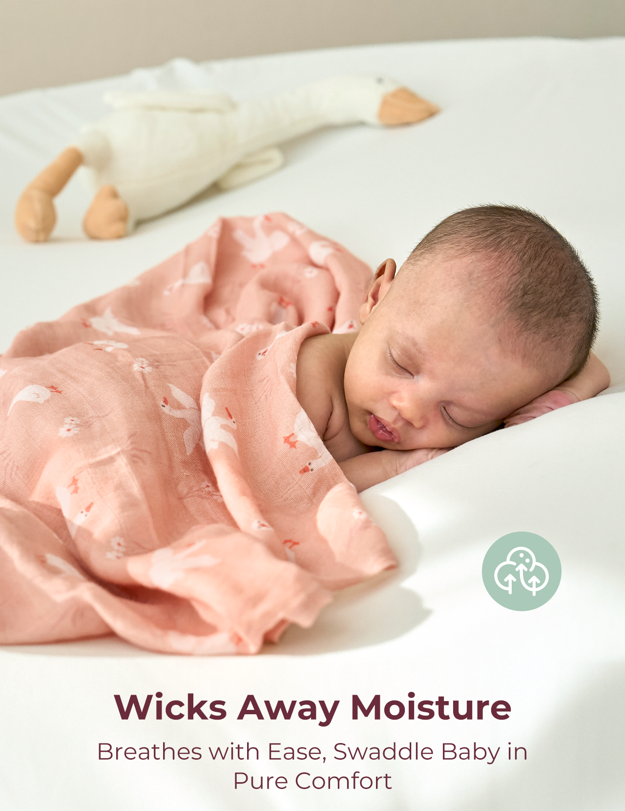 - 【Baby Sleep Better】Size 47" X 47'' (120 x 120 cm), large enough to easily wrap babies, prevents newborn babies from startling themselves awake with random arm movements, recreates the secure and cozy feeling of the womb, helps soothe your baby and get them a b etter sleep. Muslin swaddle blankets also has a certain degree of stretch, which can ensure the comfort of the baby.