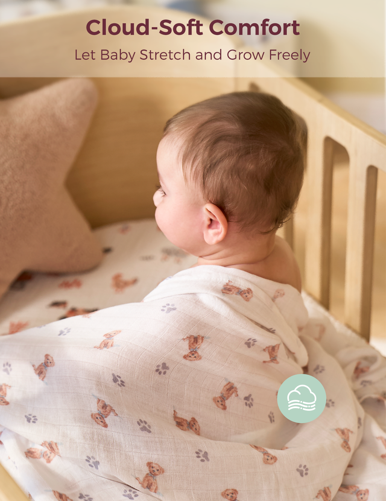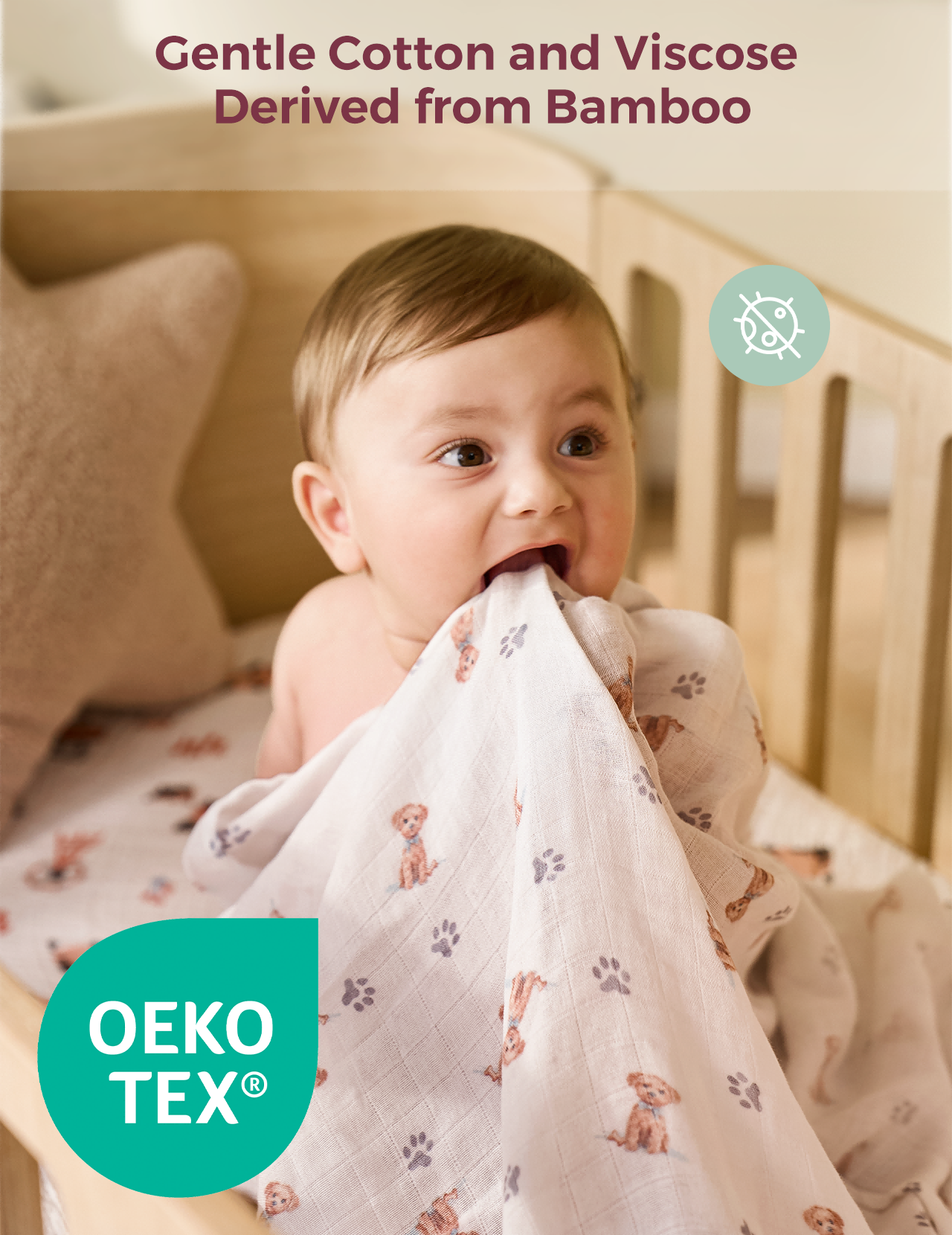 - 【Baby Sleep Better】Size 47" X 47'' (120 x 120 cm), large enough to easily wrap babies, prevents newborn babies from startling themselves awake with random arm movements, recreates the secure and cozy feeling of the womb, helps soothe your baby and get them a b etter sleep. Muslin swaddle blankets also has a certain degree of stretch, which can ensure the comfort of the baby.