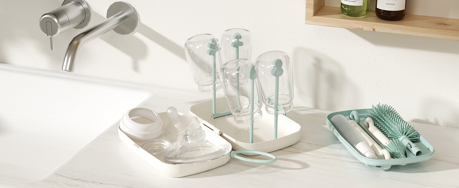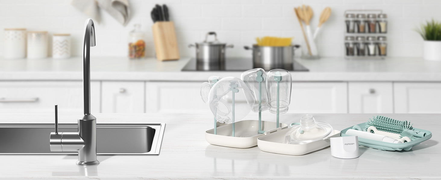 The built-in drying rack allows for efficient air-drying of all baby feeding accessories