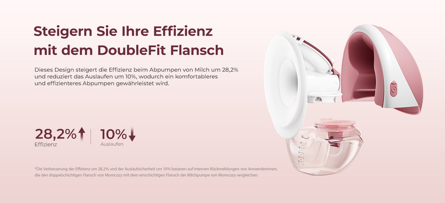 Entscheidend ist die Verwendung einer leistungsstarken Pumpe, die die Brüste vollständig entleert. Intelligente, tragbare Optionen wie die Momcozy M9 mit einer starken Saugkraft von bis zu -300 mmHg und einem bequemen DoubleFit™ Flansch wurden entwickelt, um das ausschließliche Abpumpen zu unterstützen, ohne dass dabei der Komfort oder die Milchmenge beeinträchtigt werden.