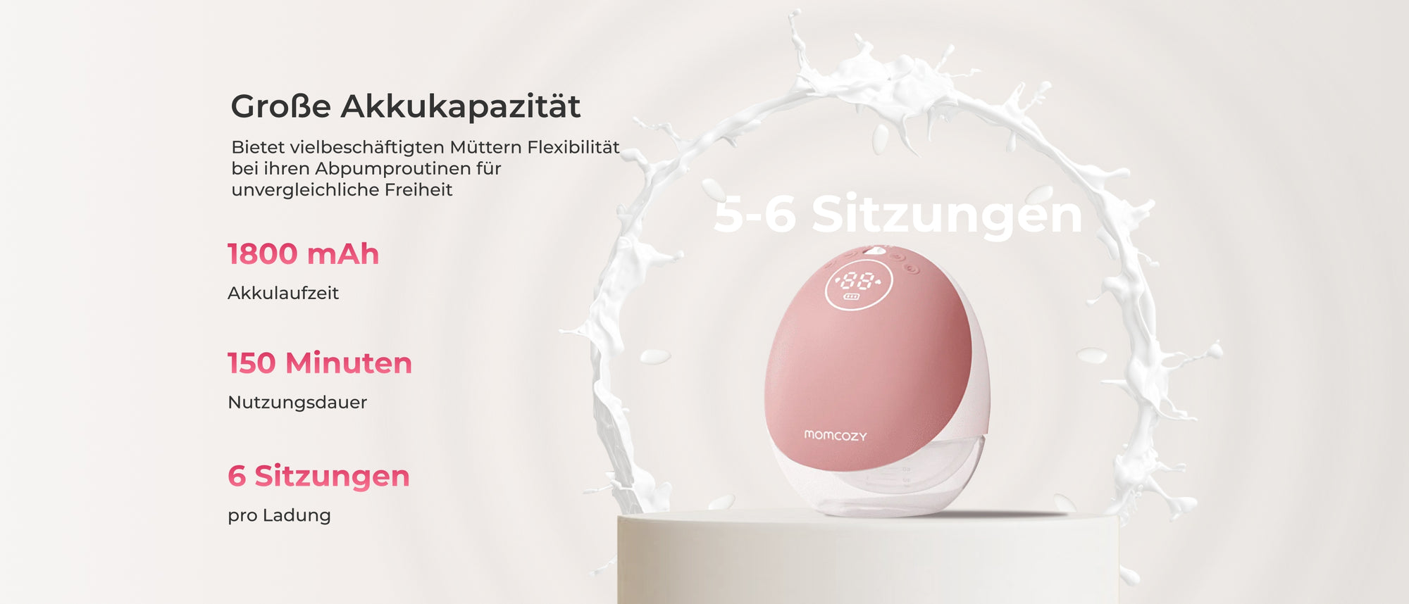 Mit einer einzigen Akkuladung können 5 bis 6 Abpumpvorgänge durchgeführt werden, ideal für viel beschäftigte Mütter, die on-the-go abpumpen