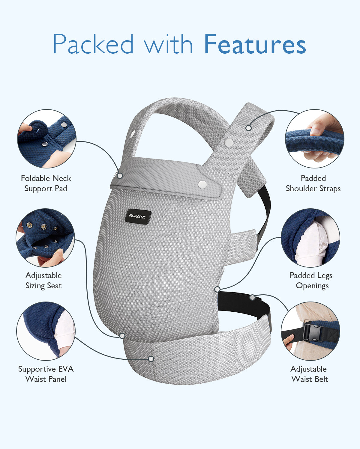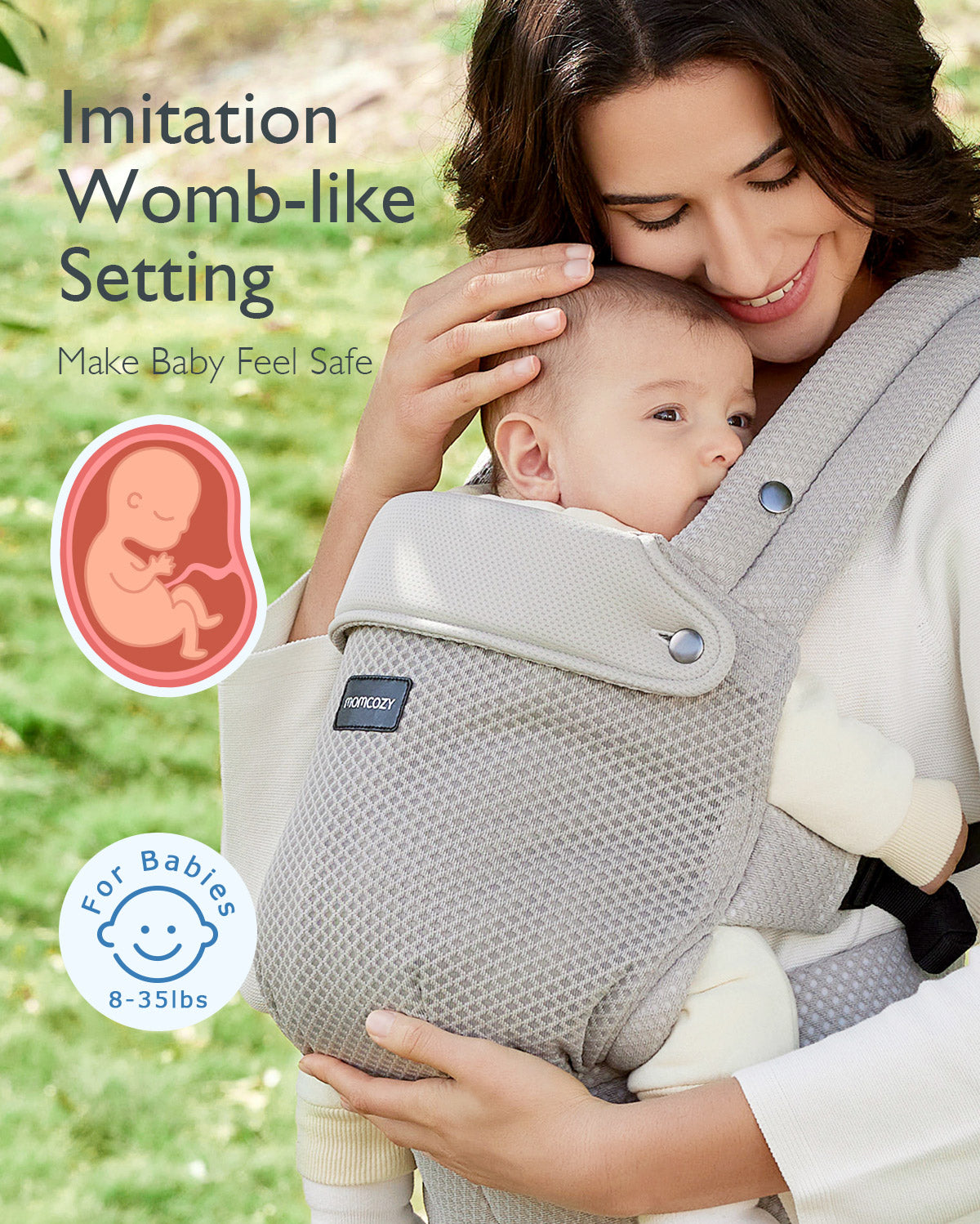 Mit der Momcozy Babytrage genießen Sie entspannte Momente mit Ihrem Baby.