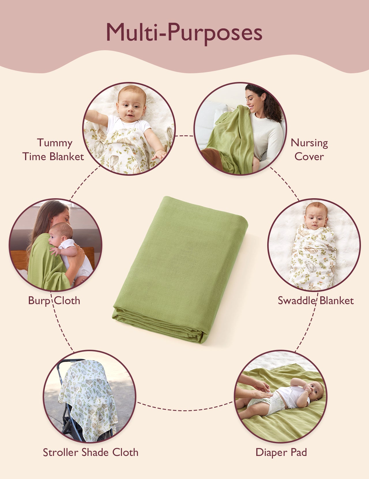 - 【Versatile and Practical】The way you use the baby swaddle blanket is entirely up to you, use it as receiving blanket, a diaper pad, baby blanket, burp cloth, stroller cover, nursing cover, shawl, mini crib sheet or even a scarf, car seat cover, play mat and so on. and don't worry that baby will outgrow so early that the baby blanket can't be used! Best baby shower gifts for new mothers and newborns.