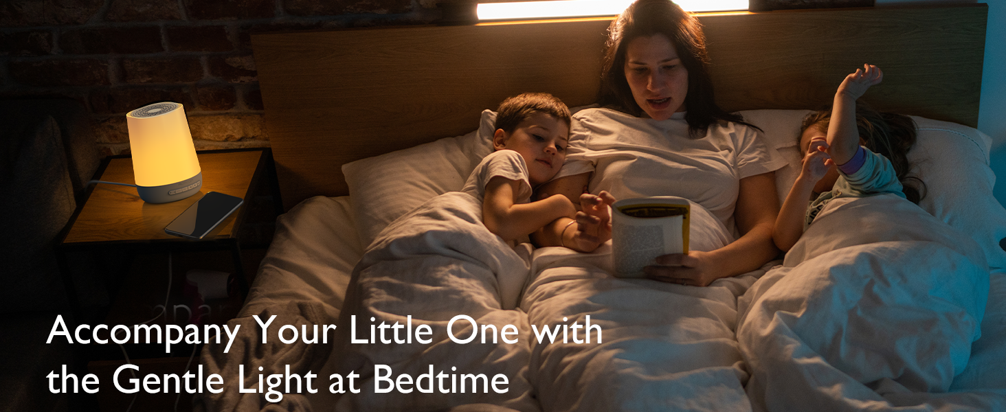 The built-in auto-off timer gently powers down the sound machine after your chosen time — no need to wake up to turn it off. In the morning, the wake-up function helps ease your child (and you) into the day with gradually increasing light or sound, encouraging a fresh and energized start.