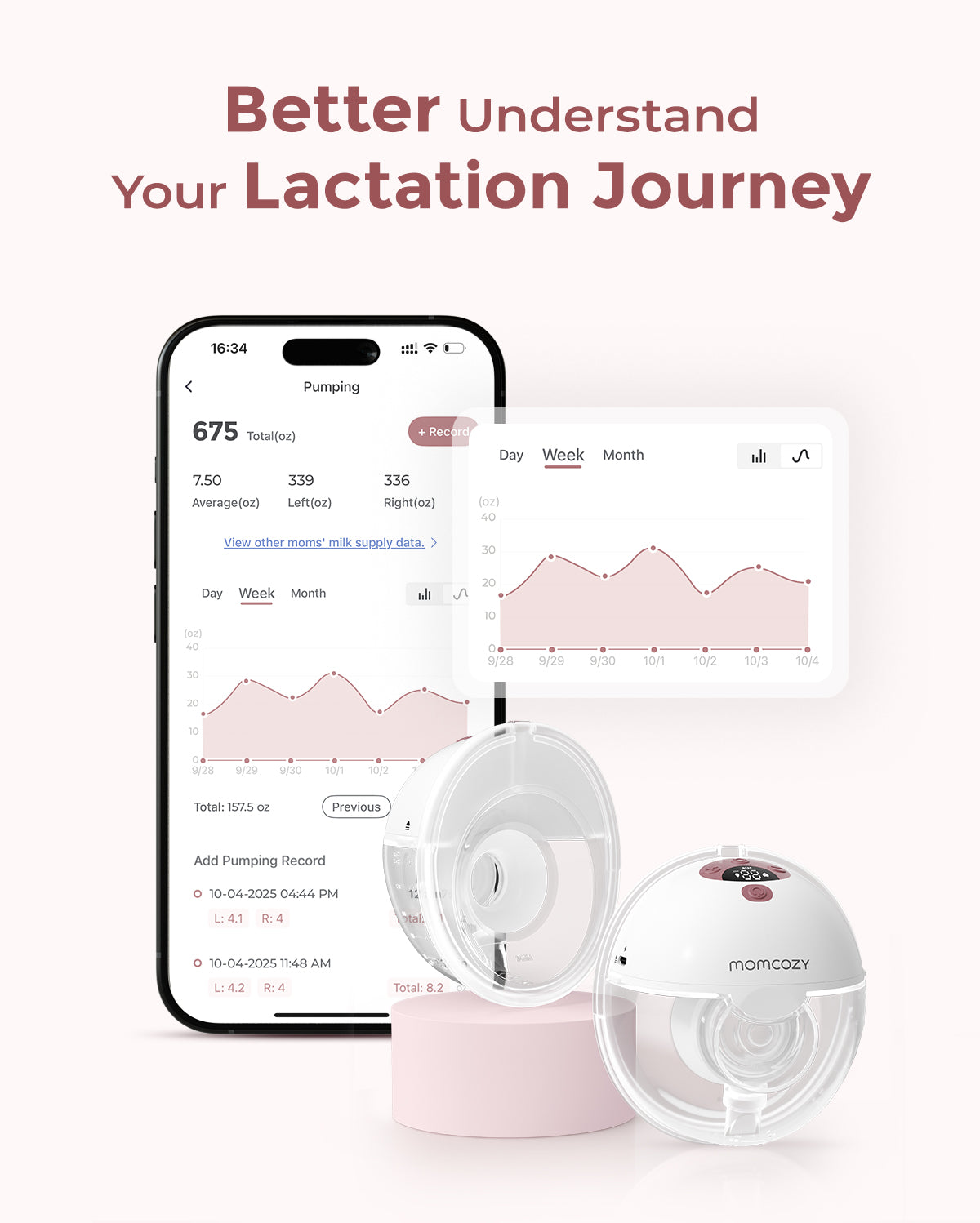 ● Smart App Control: Control your pump from your phone via the Momcozy app. Adjust pumping modes and suction levels, switch between single or double pumping, and track milk volume and trends—no reaching into your bra or adjusting buttons during use.