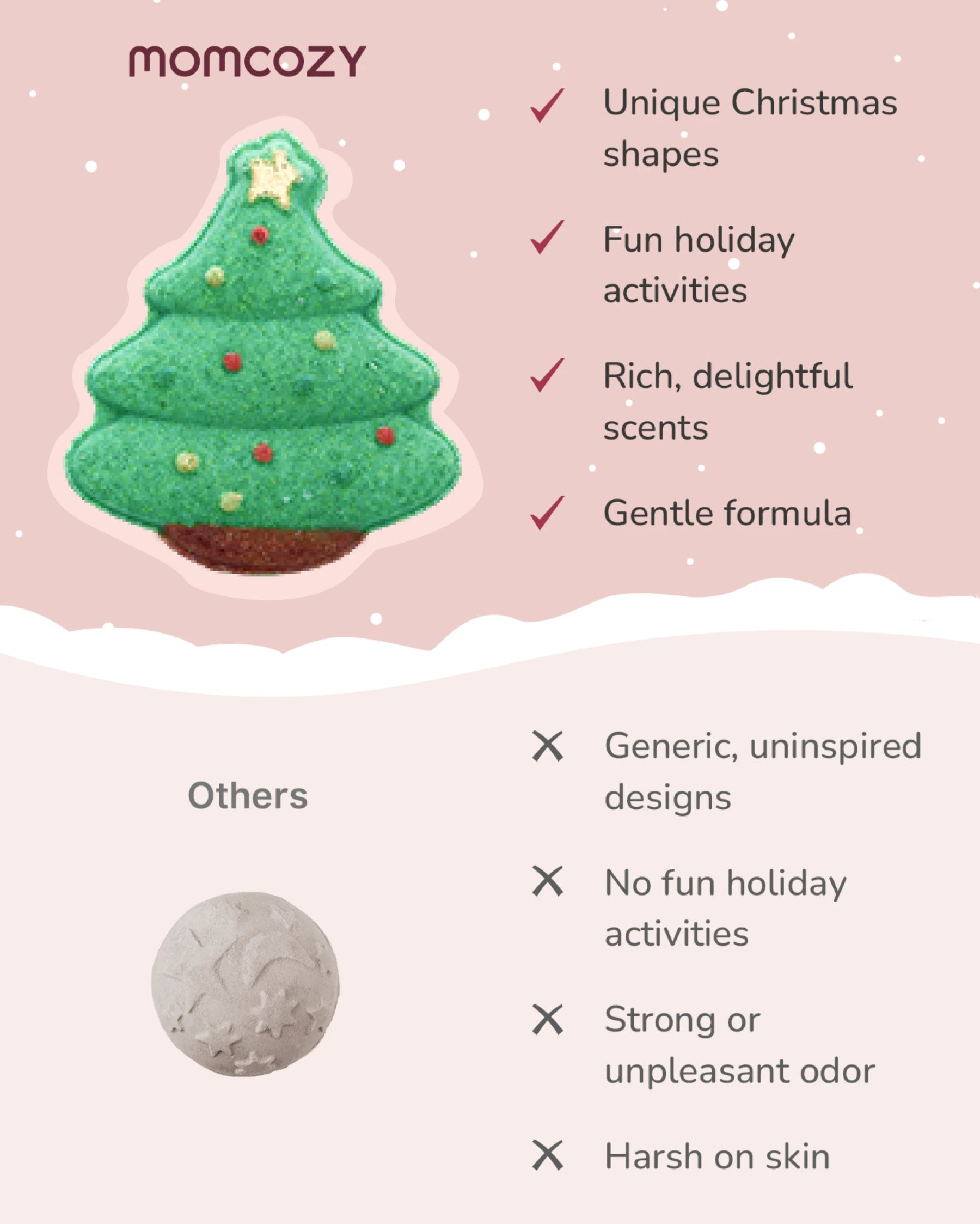 - 14 Holiday Scents that Spark Joyful Memories: Enjoy 14 festive, kid-friendly scents that spark joyful holiday memories. Each bath sparks imagination and sensory exploration, creating a fun, multi-sensory experience.