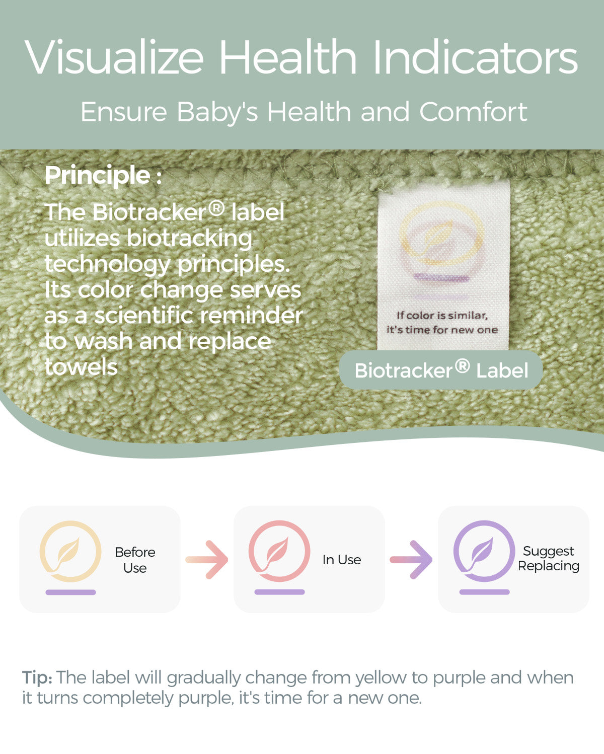 - 【The First to Pioneer Health Concept, Protecting Your Baby's Growth】 Momcozy baby towel for newborn comes with an innovative health indicator label that uses advanced tracking technology to monitor it's health condition. It reminds you to wash and replace towels scientifically, providing a safe and healthy environment