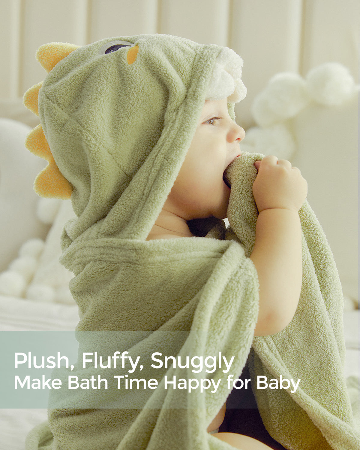 hooded towel is made of high-density plush material that is non-shedding and non-pilling with a soft texture that cares for your baby's delicate skin