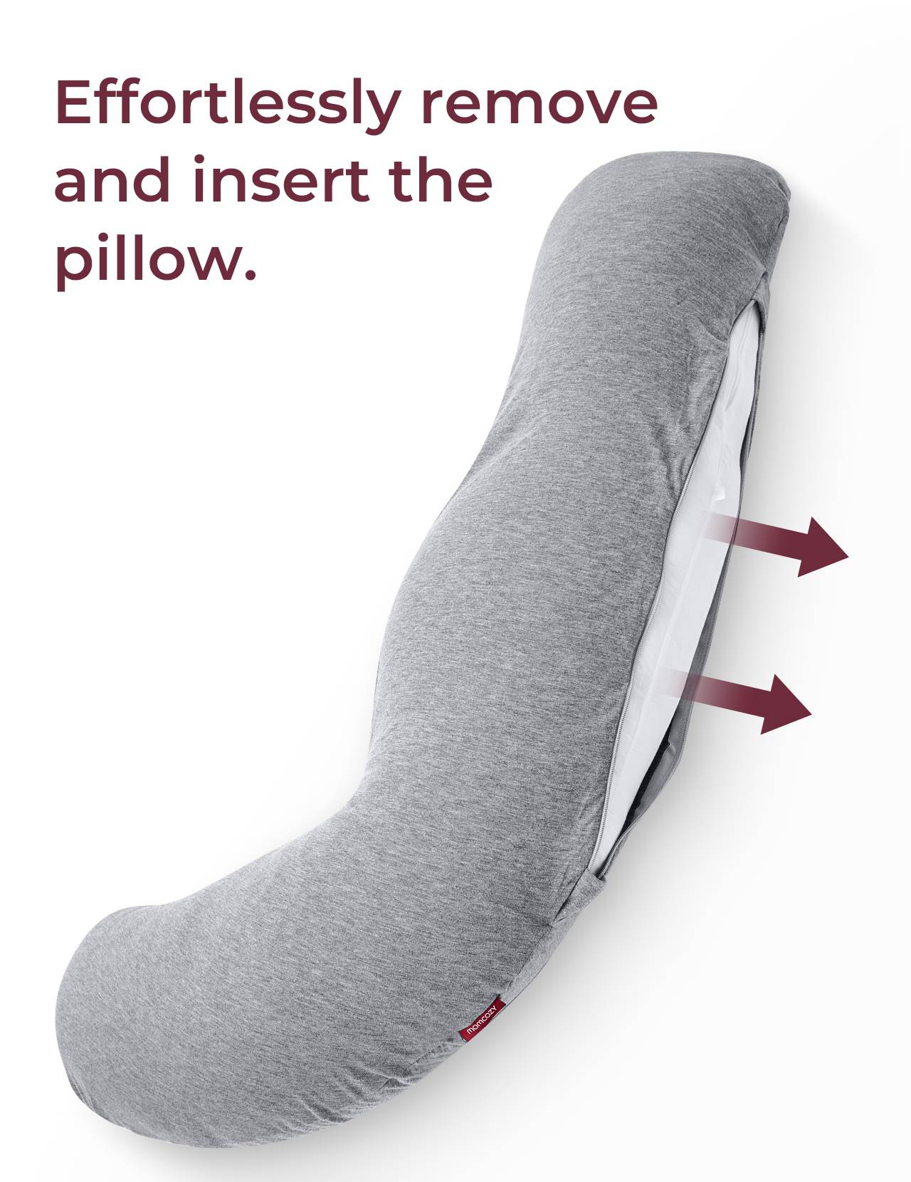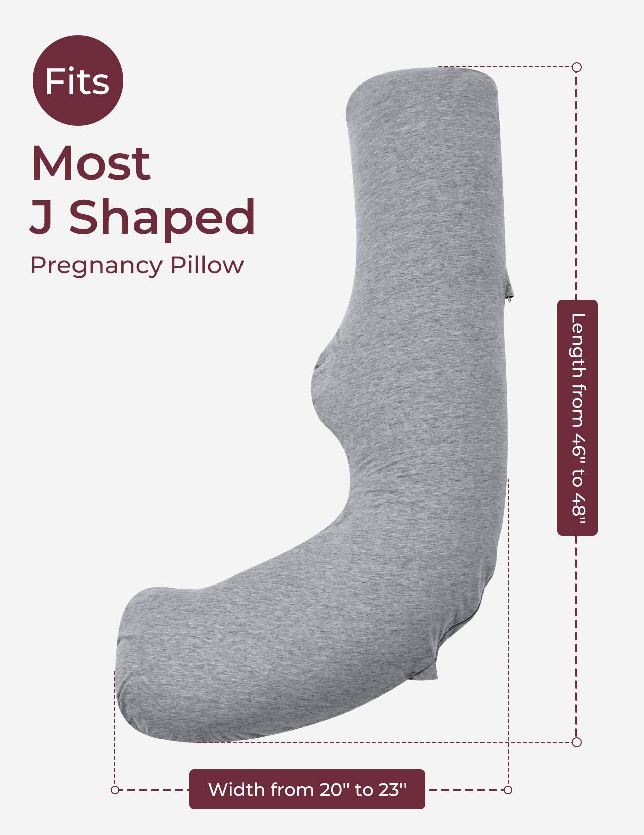 - Unique J-shaped Design: Momcozy J-shaped pillowcase measures 46 x 20 inches and provides some extra stretch to provide a neat, snug fit over most 46/48 inch J-shaped maternity pillows. Features an extra layer of softness, this pillow cover upgrades your pregnancy pillow with extreme comfort and convenience.