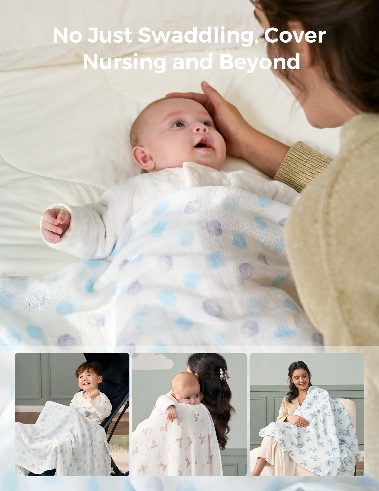 - 【Versatile and Practical】The way you use the baby swaddle blanket is entirely up to you, use it as receiving blanket, a diaper pad, baby blanket, burp cloth, stroller cover, nursing cover, shawl, mini crib sheet or even a scarf, car seat cover, play mat and so on. and don't worry that baby will outgrow so early that the baby blanket can't be used! Best baby shower gifts for new mothers and newborns.