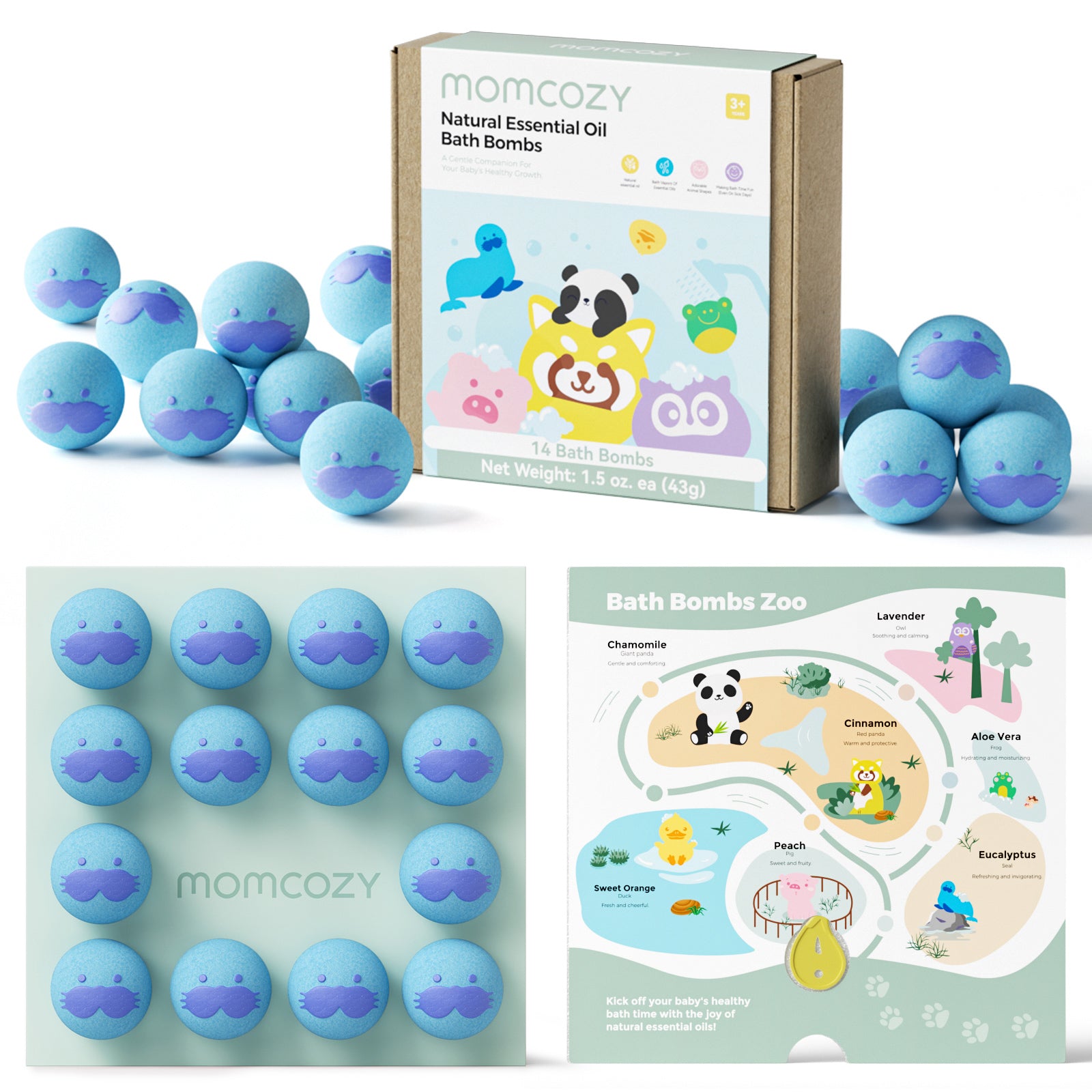 Natural&Organic Essential Oil Bath Bombs - Momcozy bath bombs are rich in natural and organic Essential Oil(Simmondsia Chinensis(Jojoba)Seed Oil), perfect for your child's sensitive skin. With a gentle pH of 6.0, these bath bombs are ideally suited for kids,toddlers,and babies, offering a safe and soothing experience. Skin Friendly and Smells sweet, they provide a fun, residue-free bath and Aromatherapy.