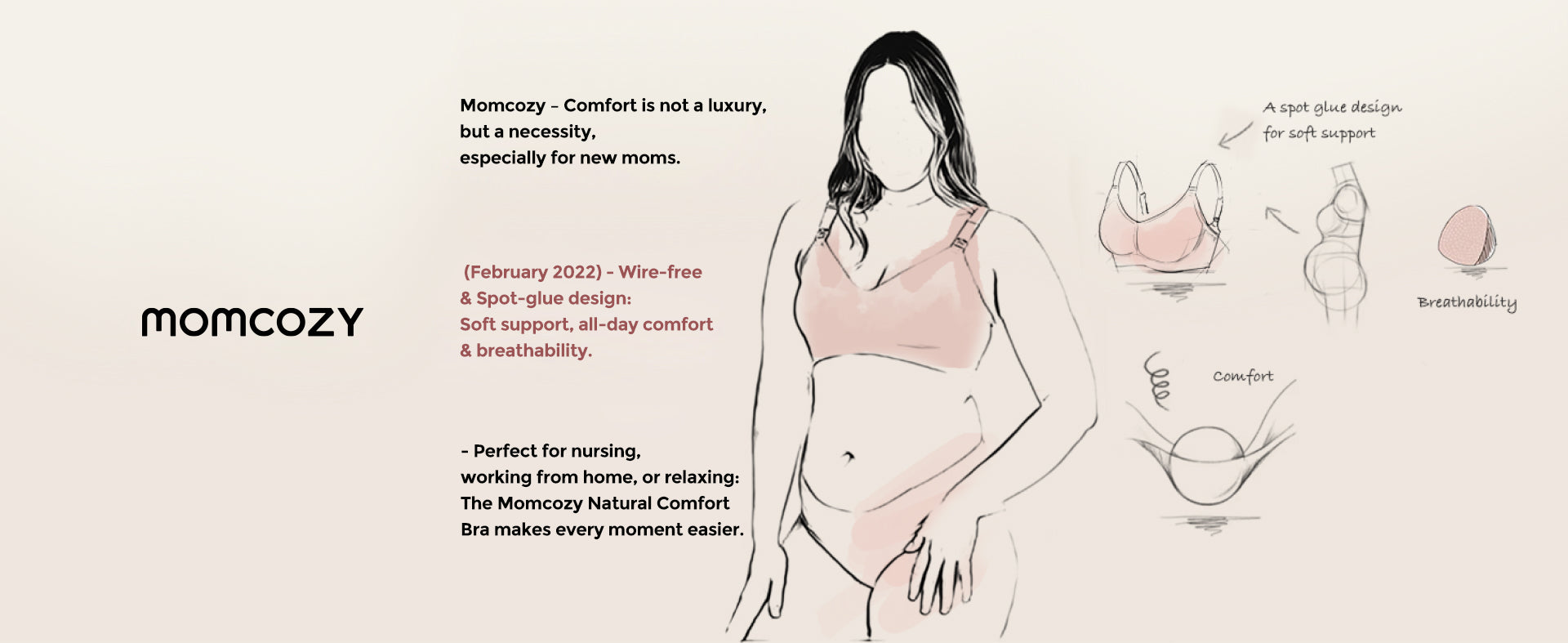 Doux, respirant et offrant un soutien délicat — conçu pour apaiser les peaux sensibles et faciliter chaque moment d’allaitement.