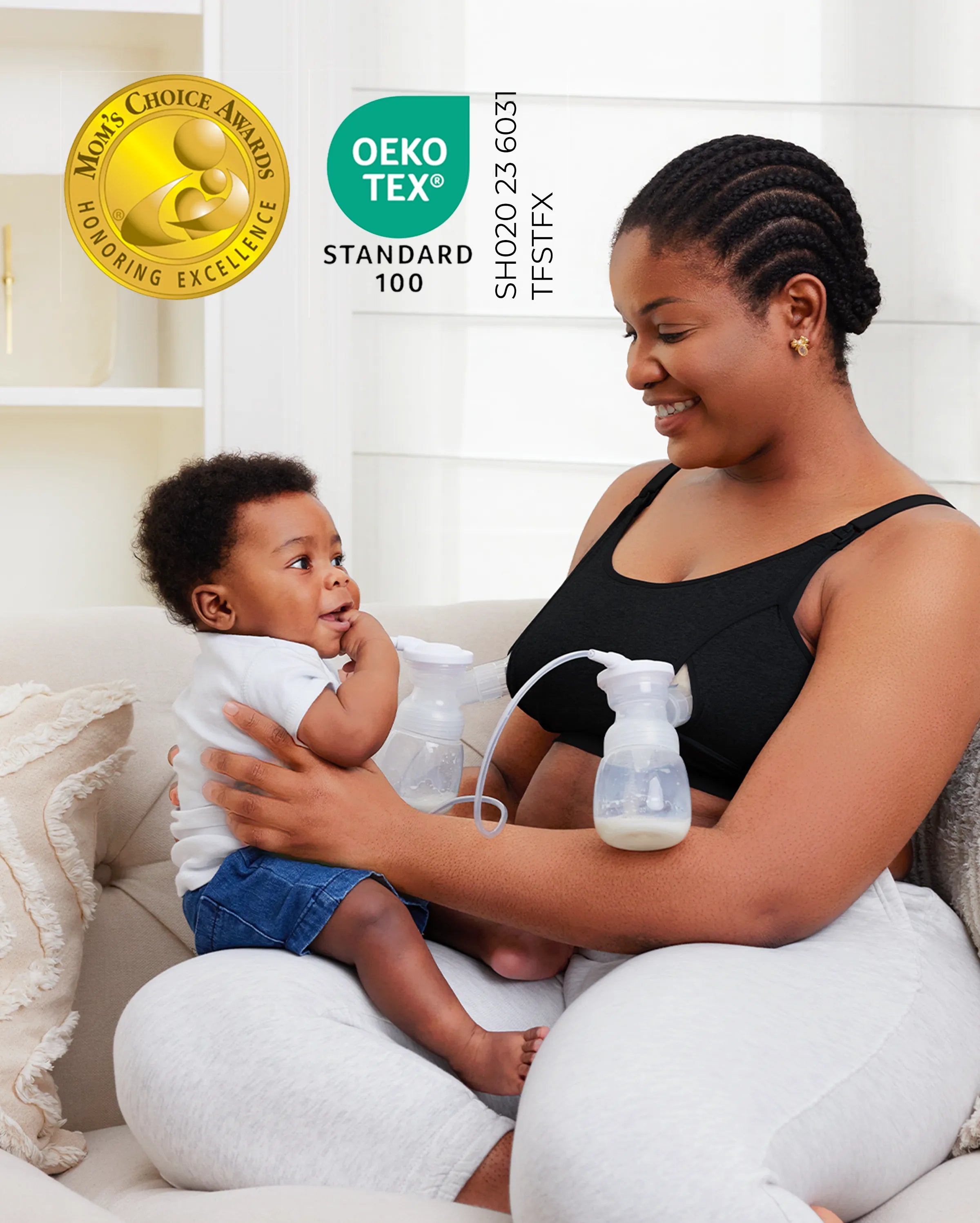 Gagnant de la médaille d'or aux Mom’s Choice Awards, ce soutien-gorge joue 3 rôles pendant la période d’allaitement des mamans : tirage sans mains, allaitement et port quotidien. Il vous permet de câliner votre bébé exigeant pendant que vous tirez votre lait et de ne pas avoir à changer de soutien-gorge après le tirage.