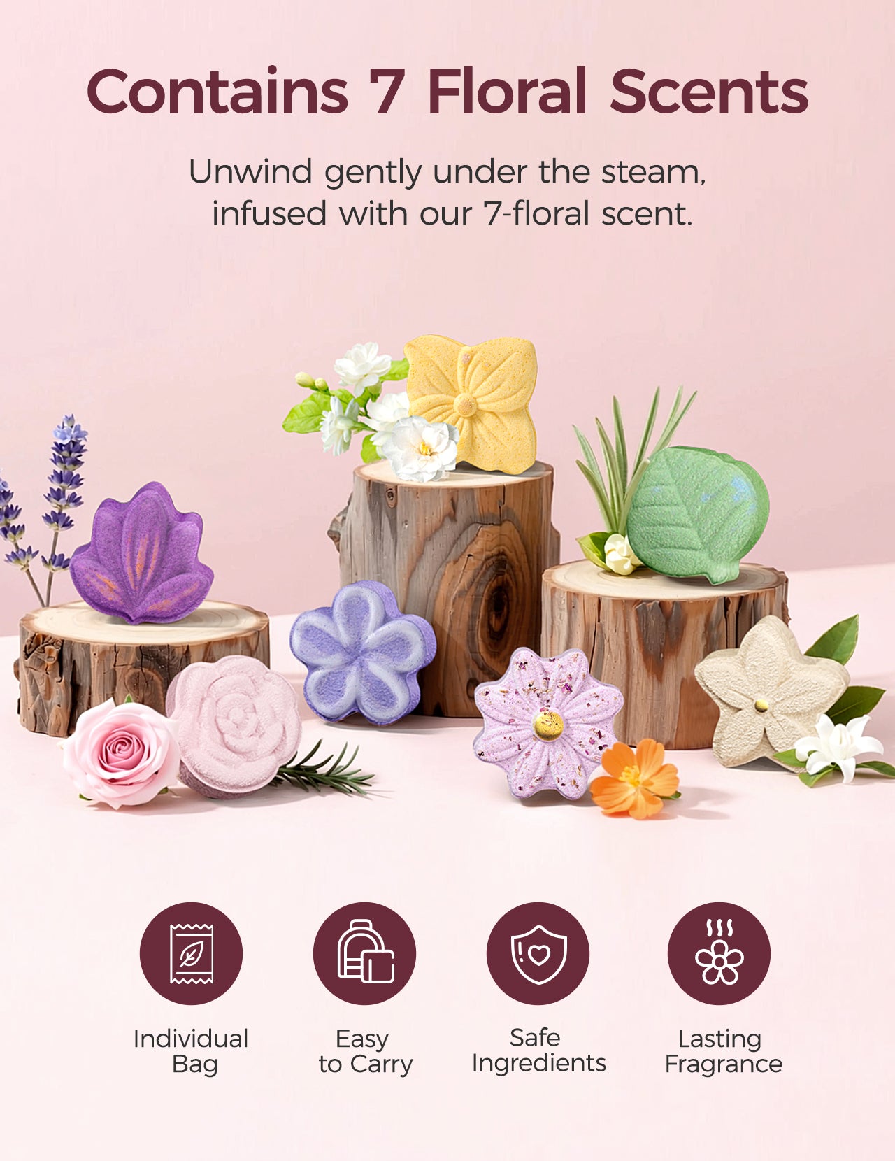 Harmonisez votre humeur avec votre douche et découvrez nos pastilles florales en sept formes de fleurs, chacune associée à un parfum unique pour transformer votre expérience.