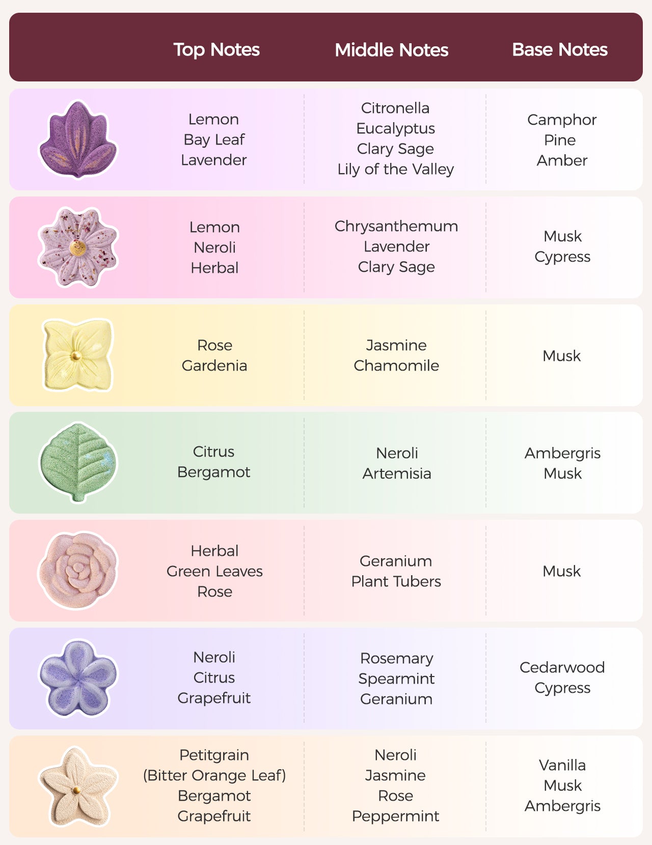 Sélectionnez une pastille de douche en harmonie avec votre humeur du jour — de la lavande apaisante au jasmin vivifiant, chaque parfum transforme votre douche en une véritable expérience de spa.
