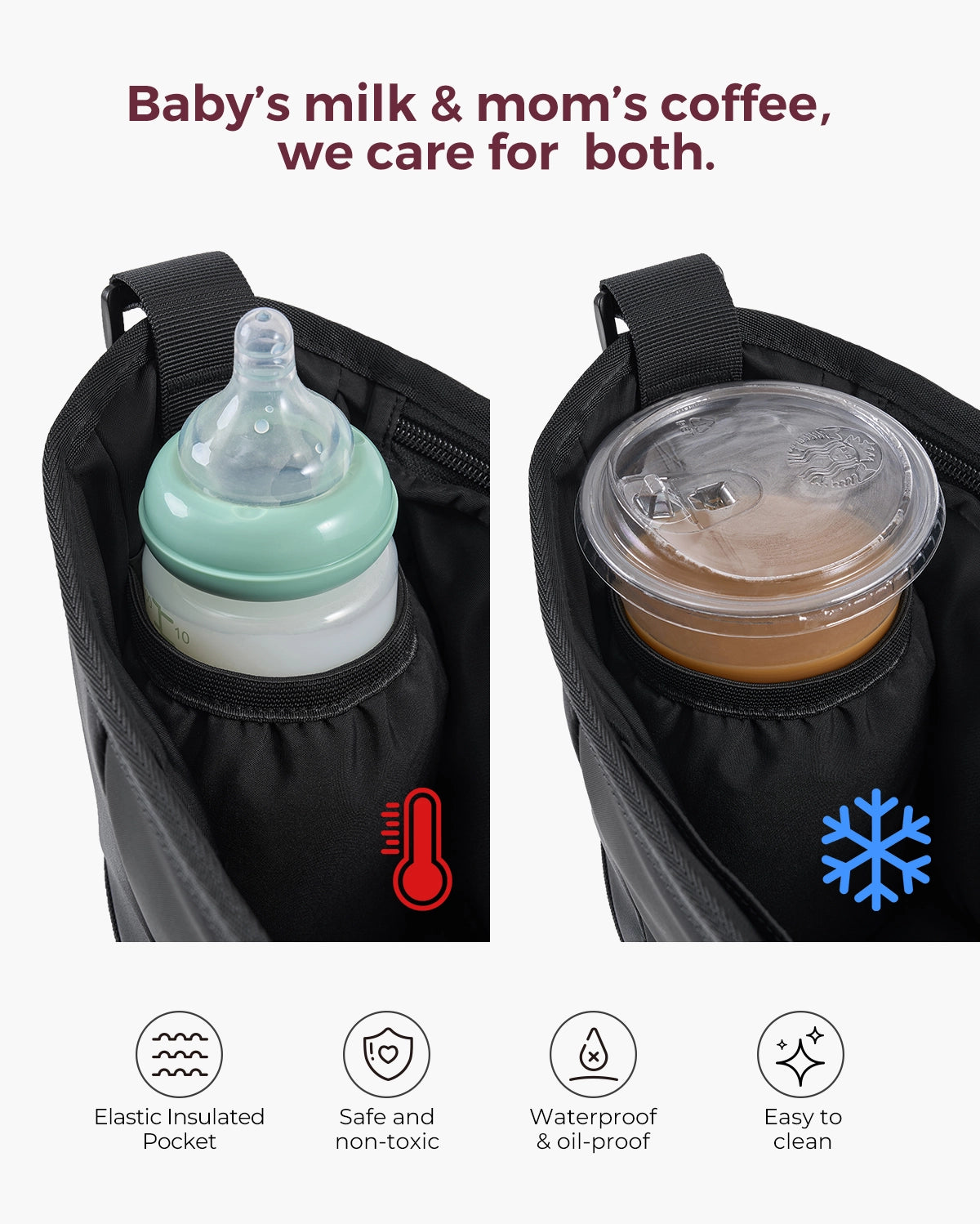 - 2 PORTE-BOUTEILLES ISOTHERMES : L’isolation intégrée garde les boissons chaudes ou froides plus longtemps lors de vos sorties (café pour vous, lait pour bébé).