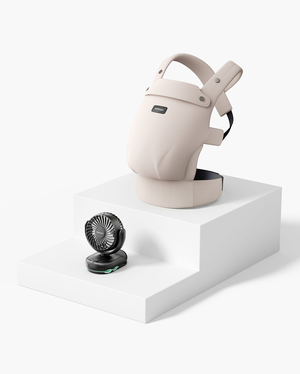 Lot d’essentiels pour les sorties : porte-bébé et ventilateur à clip pour poussette