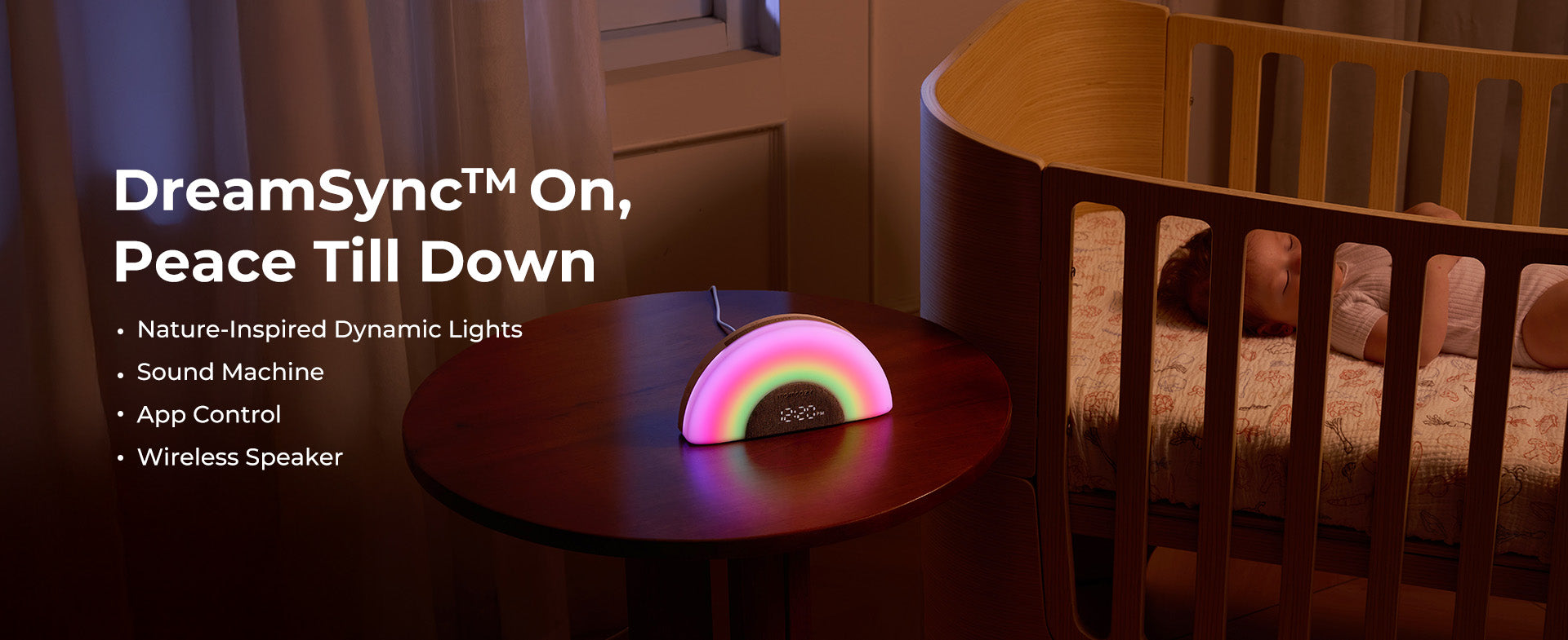 Découvrez la nouvelle machine à sons intelligente DreamSync™ de Momcozy — conçue pour envelopper bébé d’une atmosphère apaisante dès la naissance :