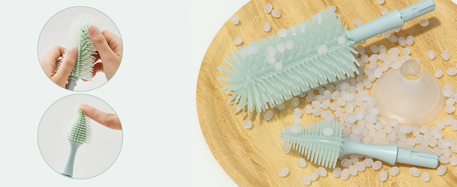 - Première brosse de nettoyage productrice de mousse:Révolutionnez votre routine de nettoyage des biberons grâce à notre brosse en silicone innovante à mousse instantanée !Fini les brosses difficiles à faire mousser : notre mécanisme de pression génère une mousse dense pour un nettoyage en profondeur.