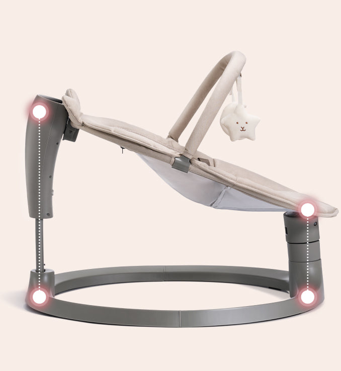 Our baby swing offers 4 swing motions and 4 adjustable swing speeds, mimicking the natural movements and rhythms of your arms to keep baby happy and content.