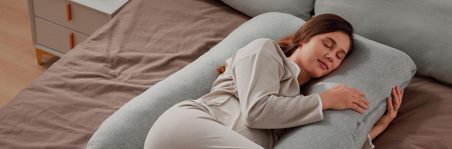 Whether you’re pregnant,nursing, recovering from an injury,or suffer from hip/back pain,fibromyalgia,or sciatica,the Momcozy full-body U-Shaped Pillow has got you covered.The unique U-shape design provides the perfect balance between comfort and support for your back, hips, legs, belly, and head.