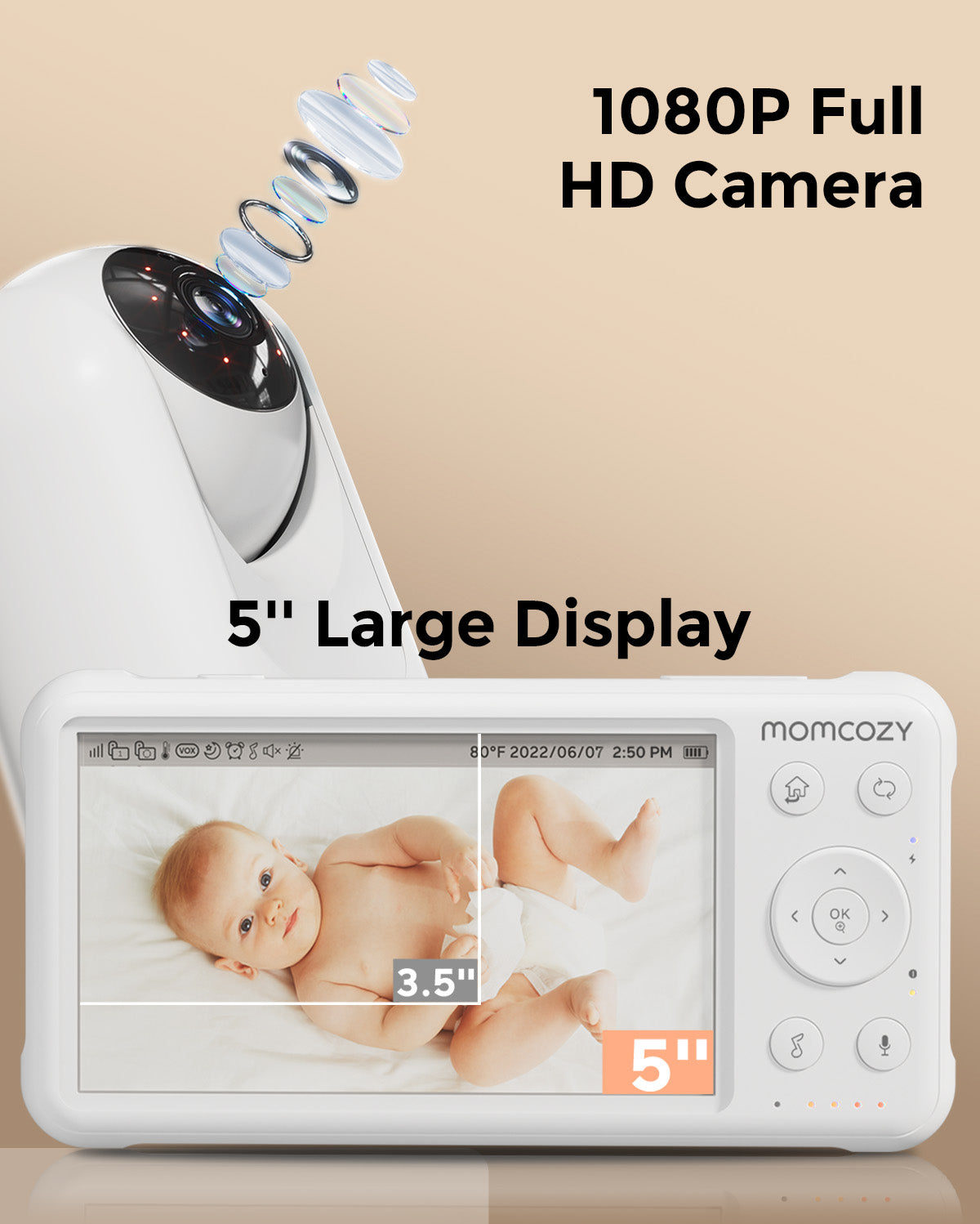 Kamera 1080p full HD i duży 5 calowy wyświetlacz umożliwiają wyraźny podgląd na wszystko co robi Twoje dziecko. Zawsze wychwycisz to, co budzi niepokój, nie tracąc przy tym najpiękniejszych chwil z Twoim dzieckiem.