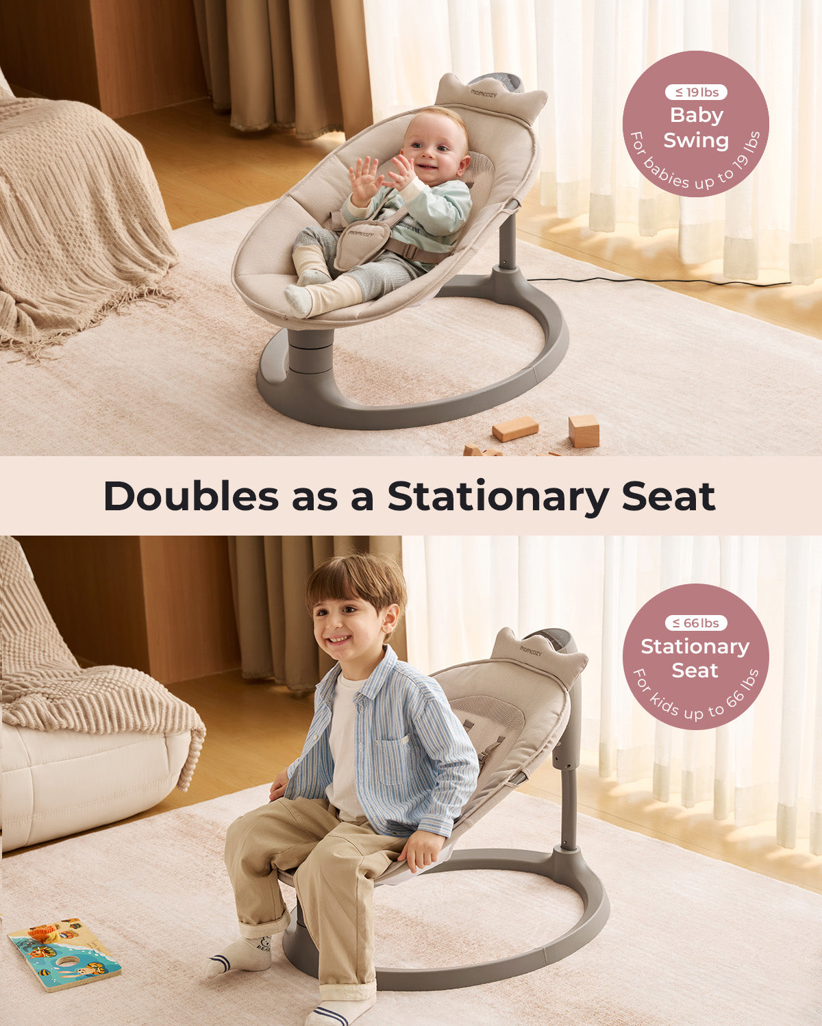 2-in-1 Design: Seamlessly converts from a newborn swing to a cozy stationary seat for kids up to 66 lbs.