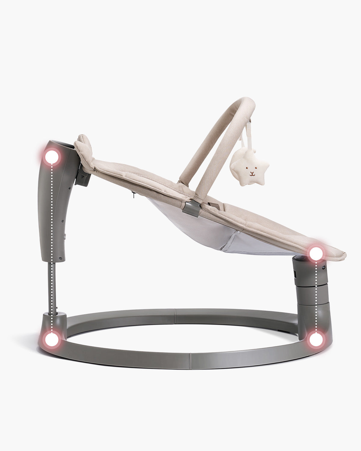 Dual-Arm Support System: Unlike traditional newborn swings with a single side arm, our swing uses a dual-arm support system—one in the front and one in the rear—to ensure the seat stays securely anchored during every motion.