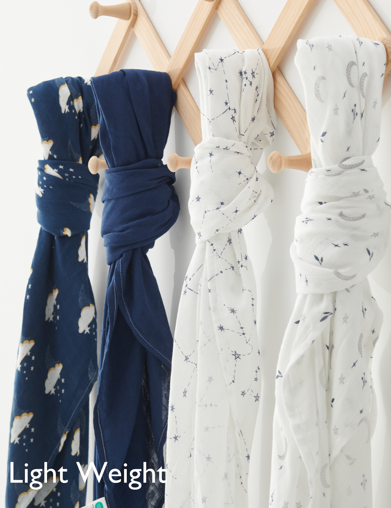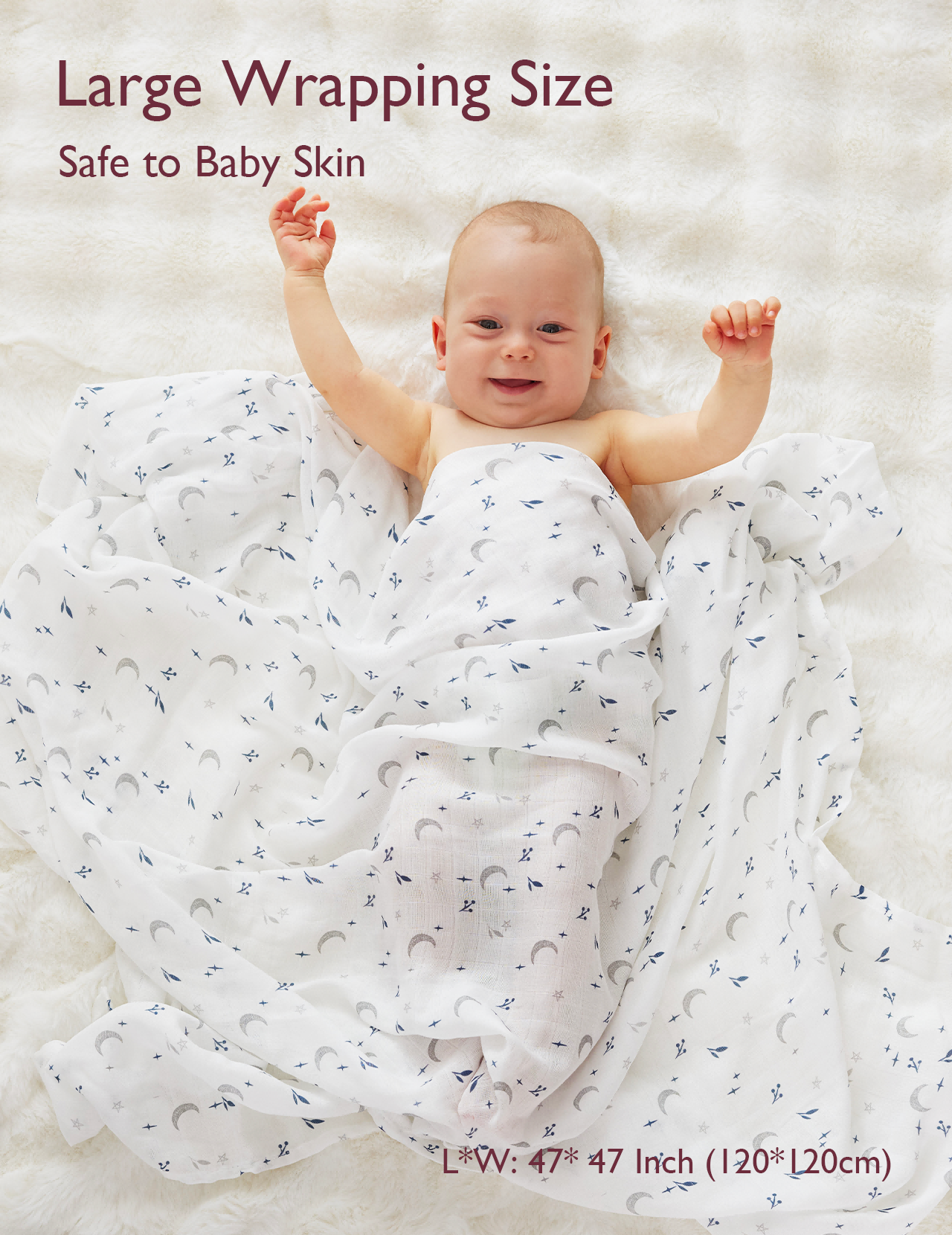 - 【Baby Sleep Better】Size 47" X 47'' (120 x 120 cm), large enough to easily wrap babies, prevents newborn babies from startling themselves awake with random arm movements, recreates the secure and cozy feeling of the womb, helps soothe your baby and get them a b etter sleep. Muslin swaddle blankets also has a certain degree of stretch, which can ensure the comfort of the baby.