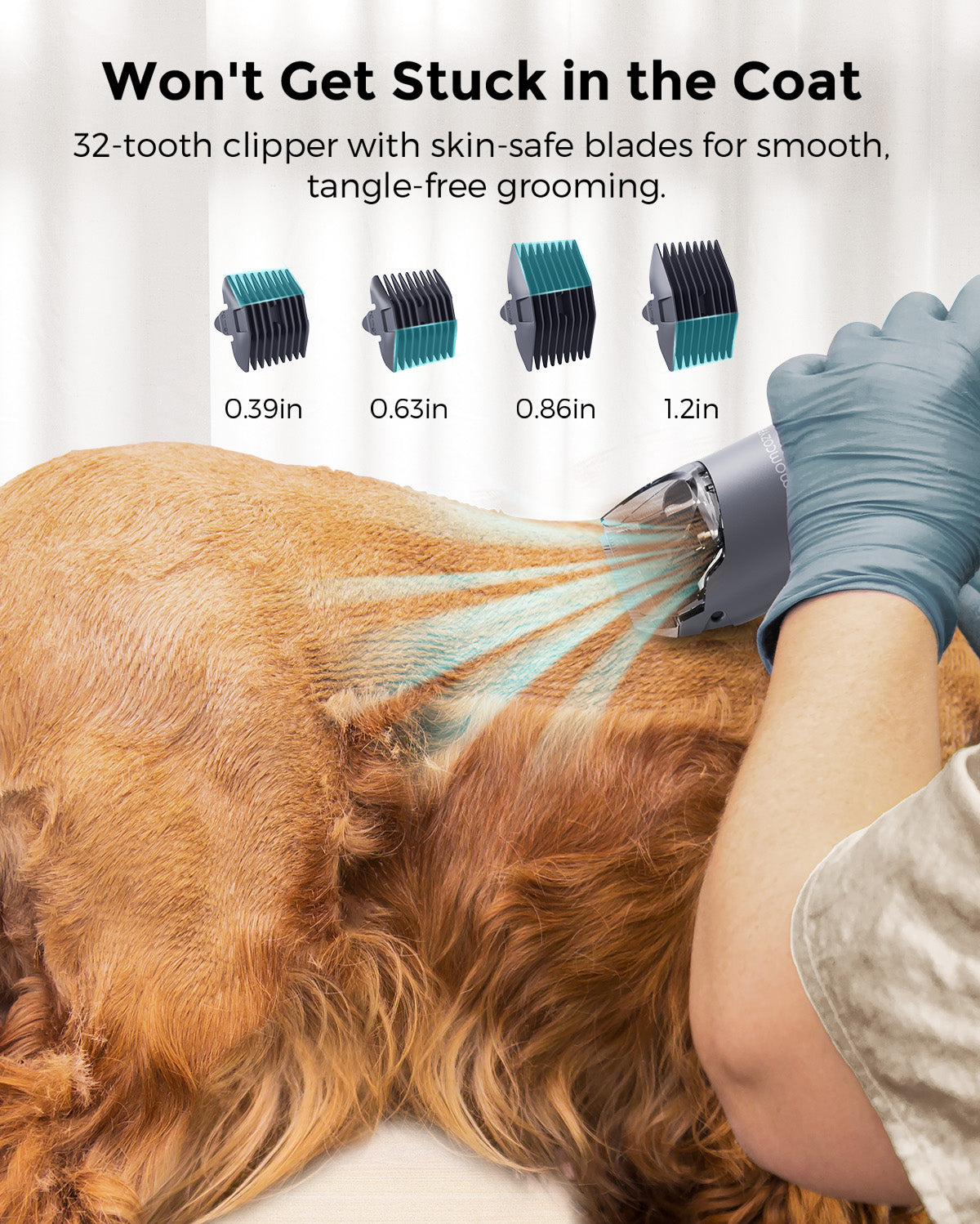 Safe and Efficient Grooming: With a 32-tooth clipper design for tangle-free trimming, FurEase dog clippers for grooming delivers smooth results every time. Its ceramic and stainless steel blades are gentle and safe on your pet’s skin. The rechargeable battery provides up to 3 hours of cordless grooming freedom, so you can groom anywhere without needing to connect a hose.
