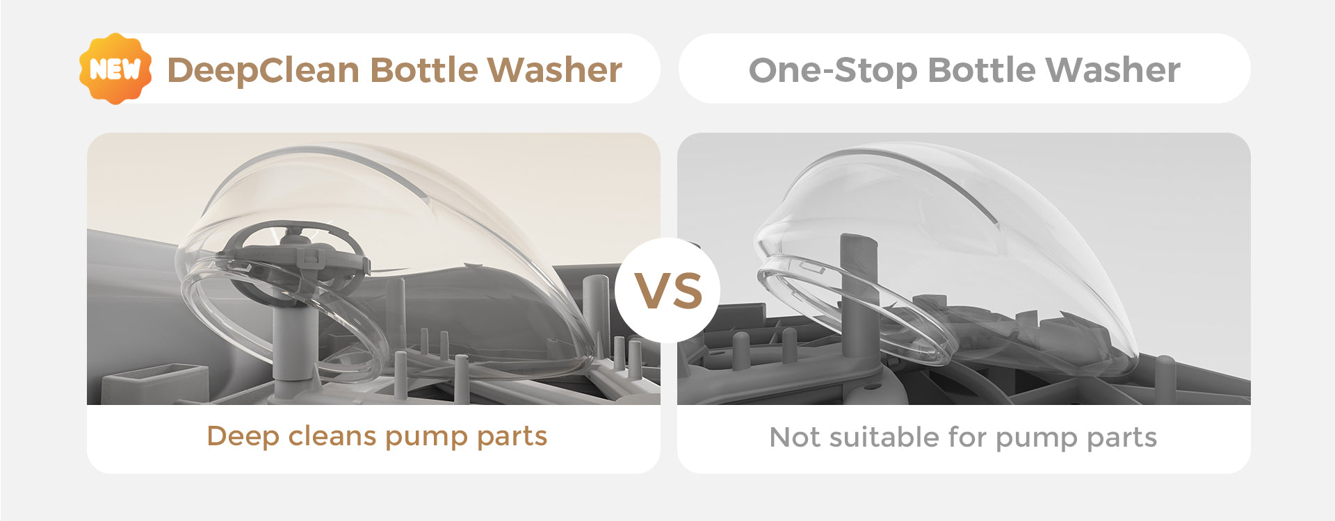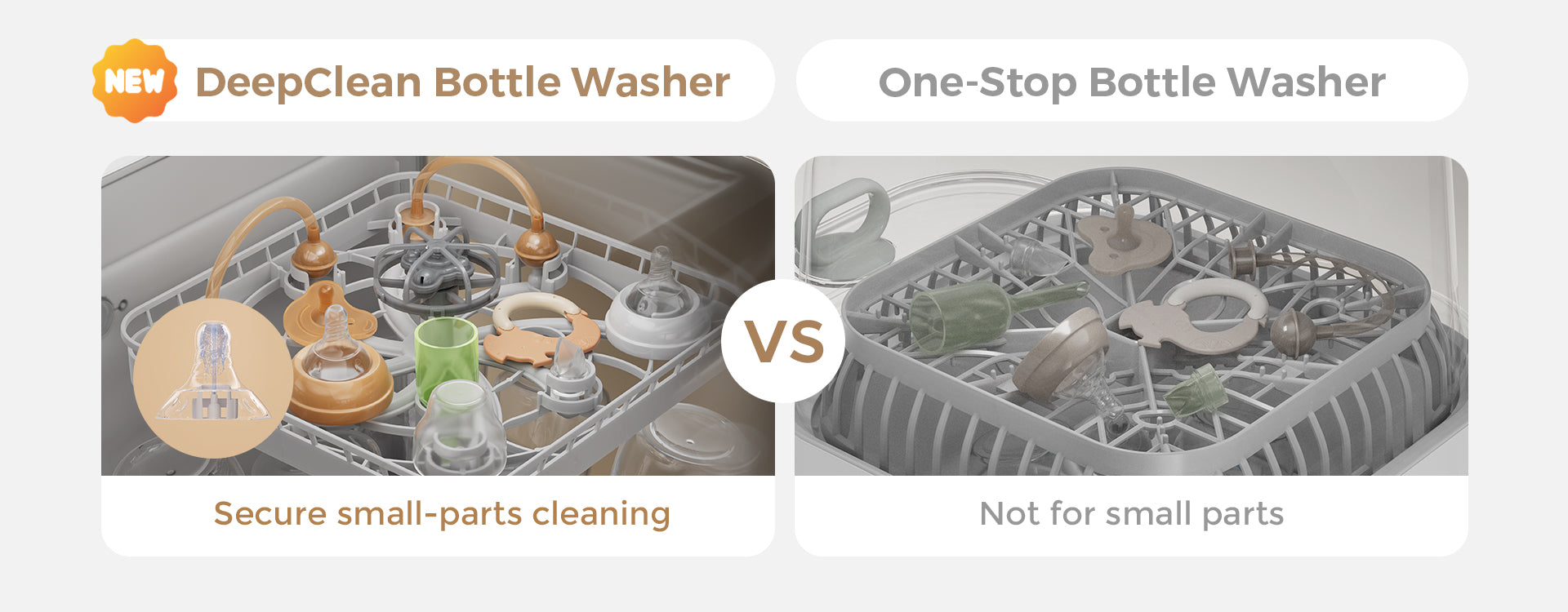 The Momcozy DeepClean Bottle Washer uses the HydroJet360 multi-layer spray system with 112,000 Pa high-pressure warm water to clean bottles and breast pumps from every angle, including tricky parts like nipples, caps, and tubing that conventional dishwashers often miss. SGS-certified high-temperature sterilization eliminates 99.9% of bacteria and prevents cross-contamination, specially designed for safe baby feeding. Suitable for 0–3 years, it grows with your child for long-term use.