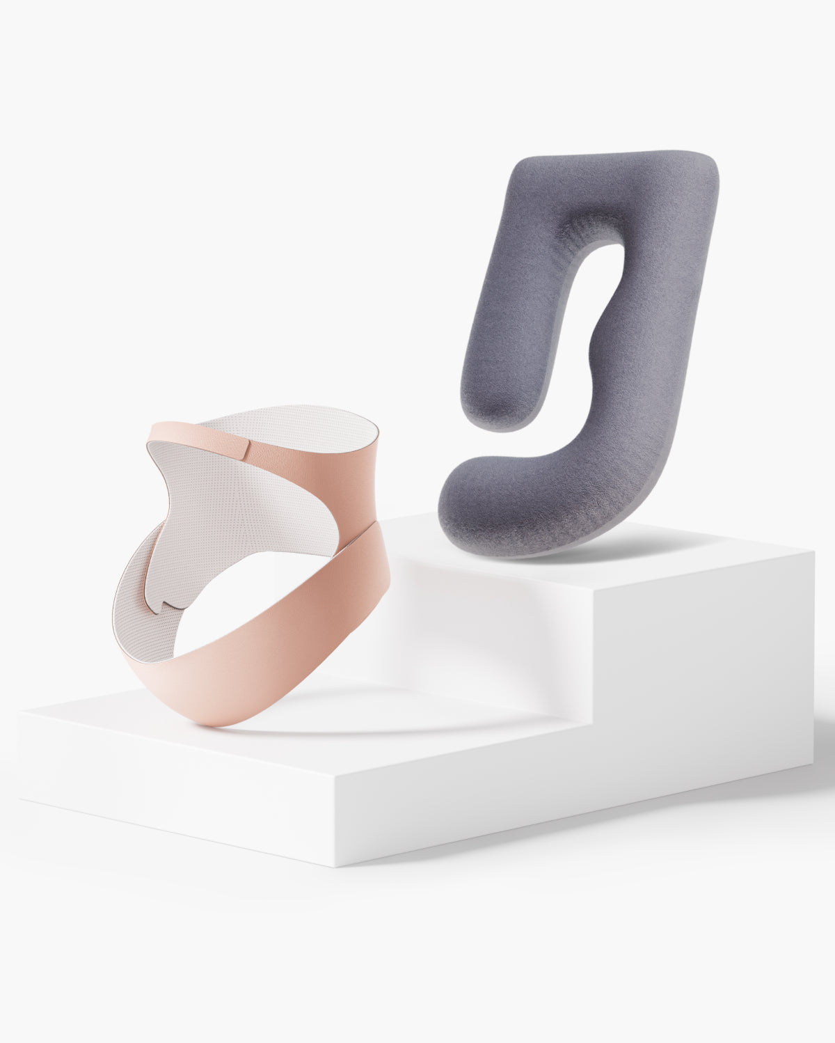 Pregnant woman resting on a U-shaped maternity pillow for comfortable sleep and body support, light gray plush material.