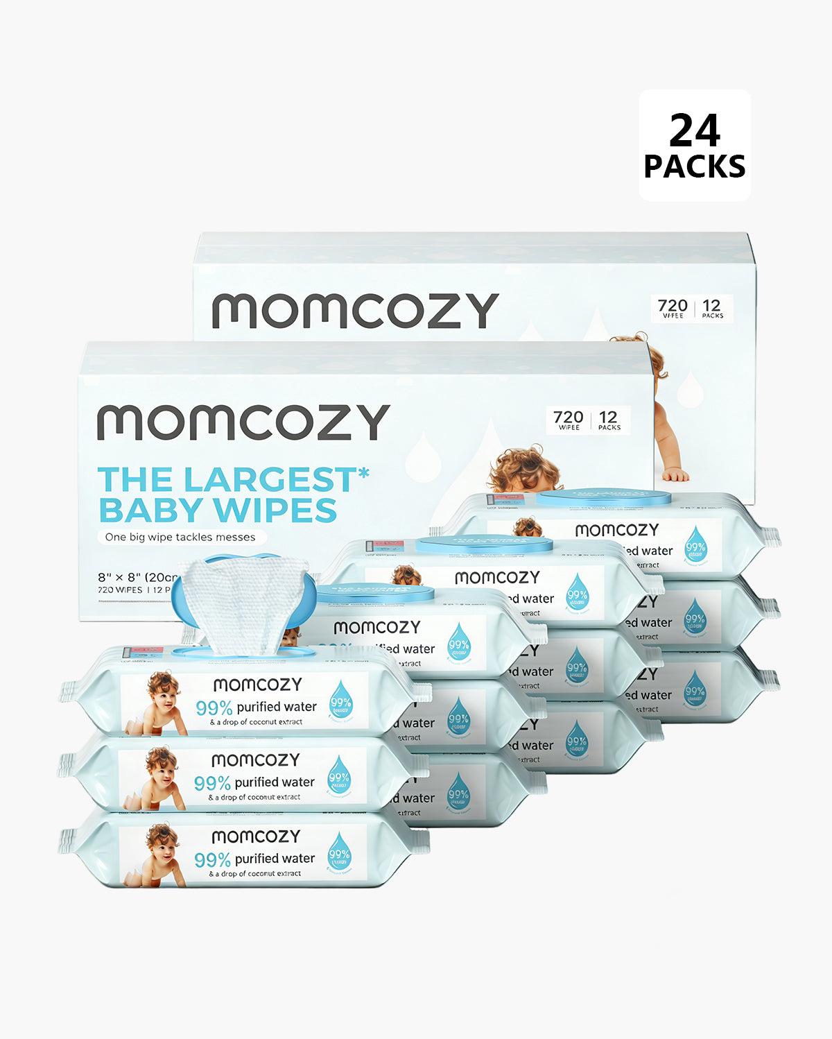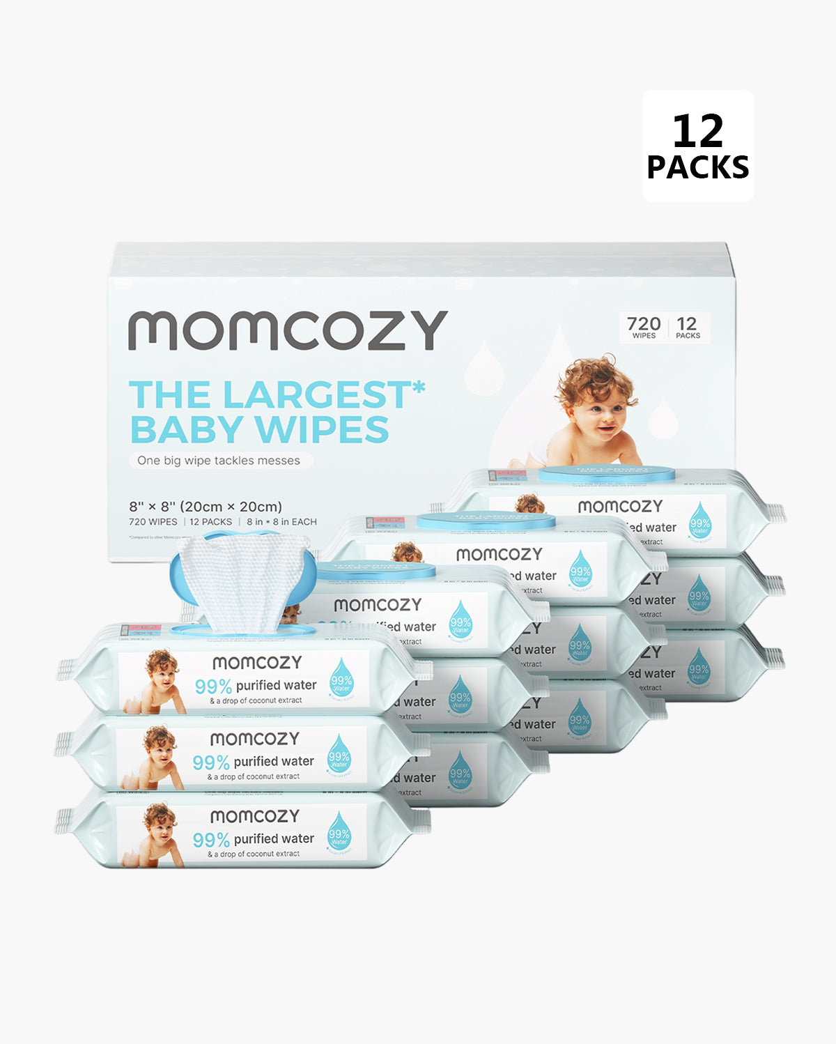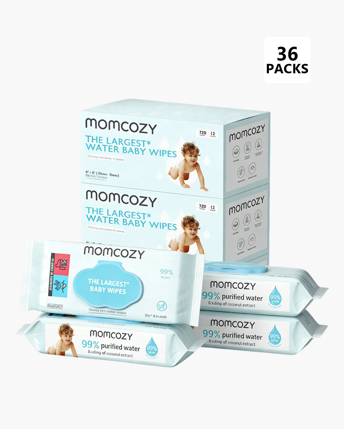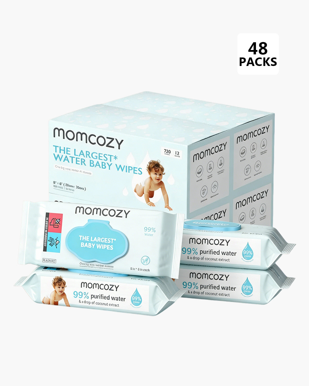 Momcozy's Baby wipes went through 7-step purification process. 99% of purified water ensure the highest level of safety for your baby. An extra drop of coconut extract acts as a natural skin conditioner to care for the skin.