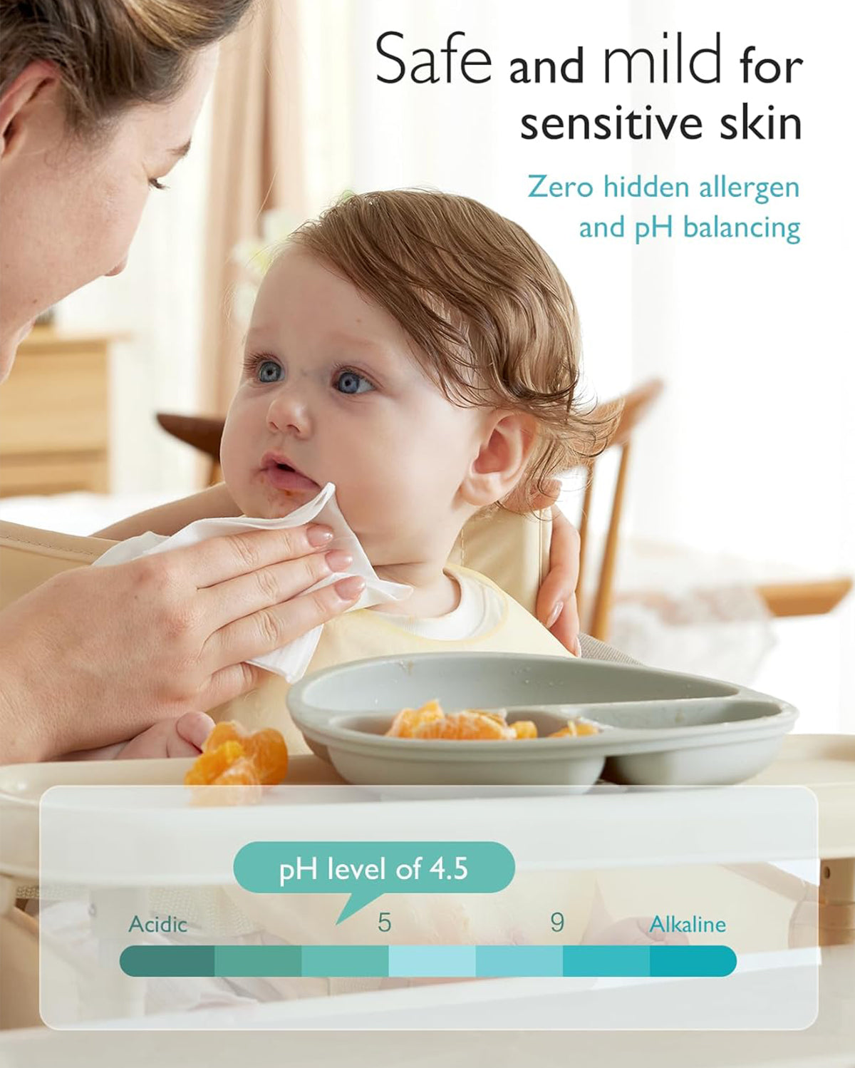 Our baby wipes are pH-balancing for the most sensitive skin, with no harsh chemicals added. You can rest assured that only the purest care are presented to your baby!