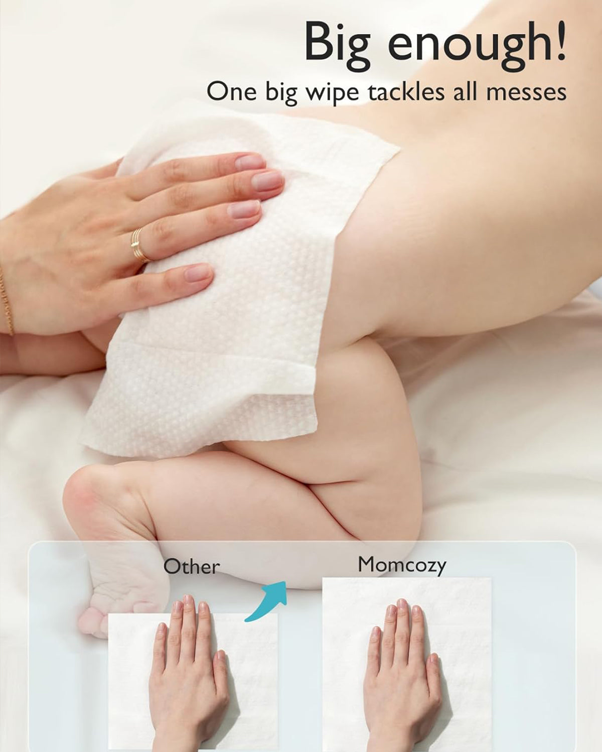 Size up to clean up! Thanks to the extra large design of 20cm*20cm, now you can handle any messes ranging from little messy butt, little stick fingers to dirty hard surfaces. It's a reliable helper for moms and their little ones!